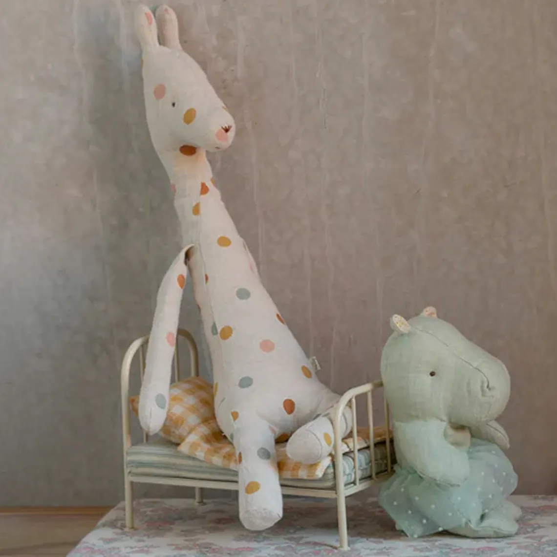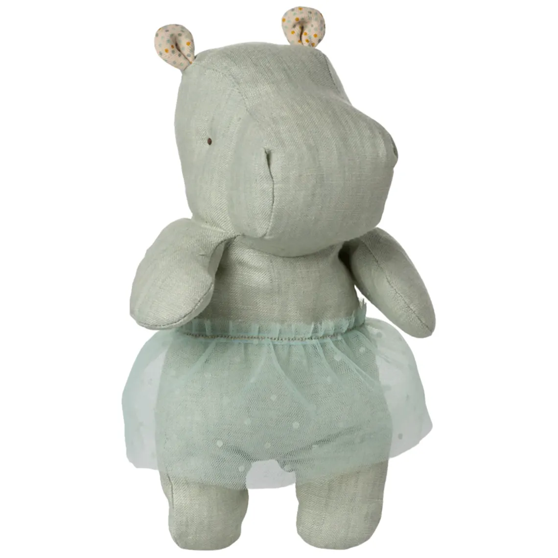 Safari Friends er lavet af blødt stof og fås i mange skønne farver. De kan sidde selv takket være bønner i bagenden og venter på et kram. De små flodheste er pyntet med smukke ballerina-tylskørter, som gør dem ekstra charmerende.