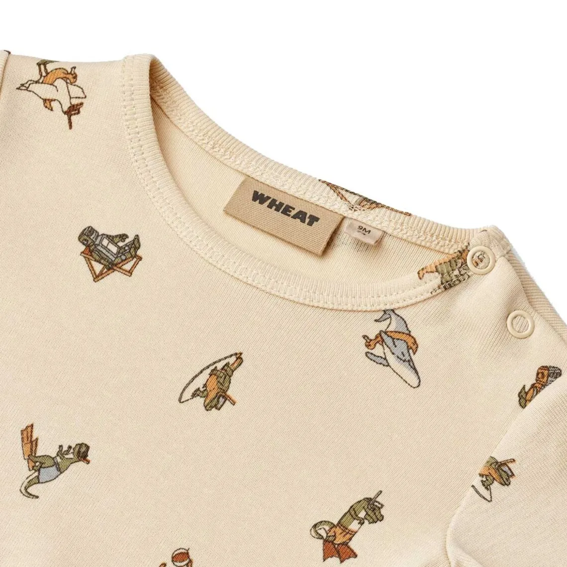 – Wheat signaturprint Wheats basis body er en sand klassiker i garderoben, når det kommer til småbørn. Denne body har trykknapper på den ene skulder samt i bunden for bedre komfort, når du skal klæde dit barn på. Brug bodyen som den inderste del i ethvert outfit, da den er blød at have tæt på huden Materiale