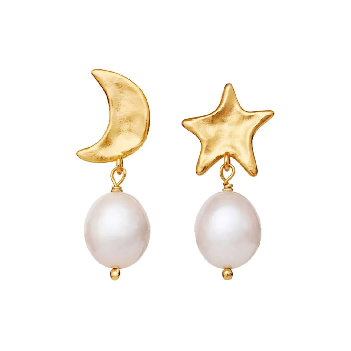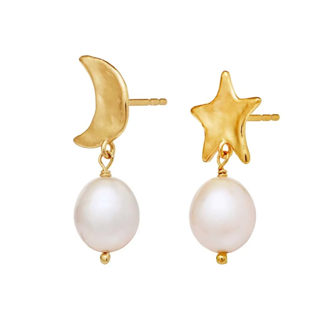 Gabrielle øreringe fra Maanesten. Månen og stjernerne er nattens regenter. Lad Gabrielle øreringene bringe deres natlige styrke ind i dagens lys.