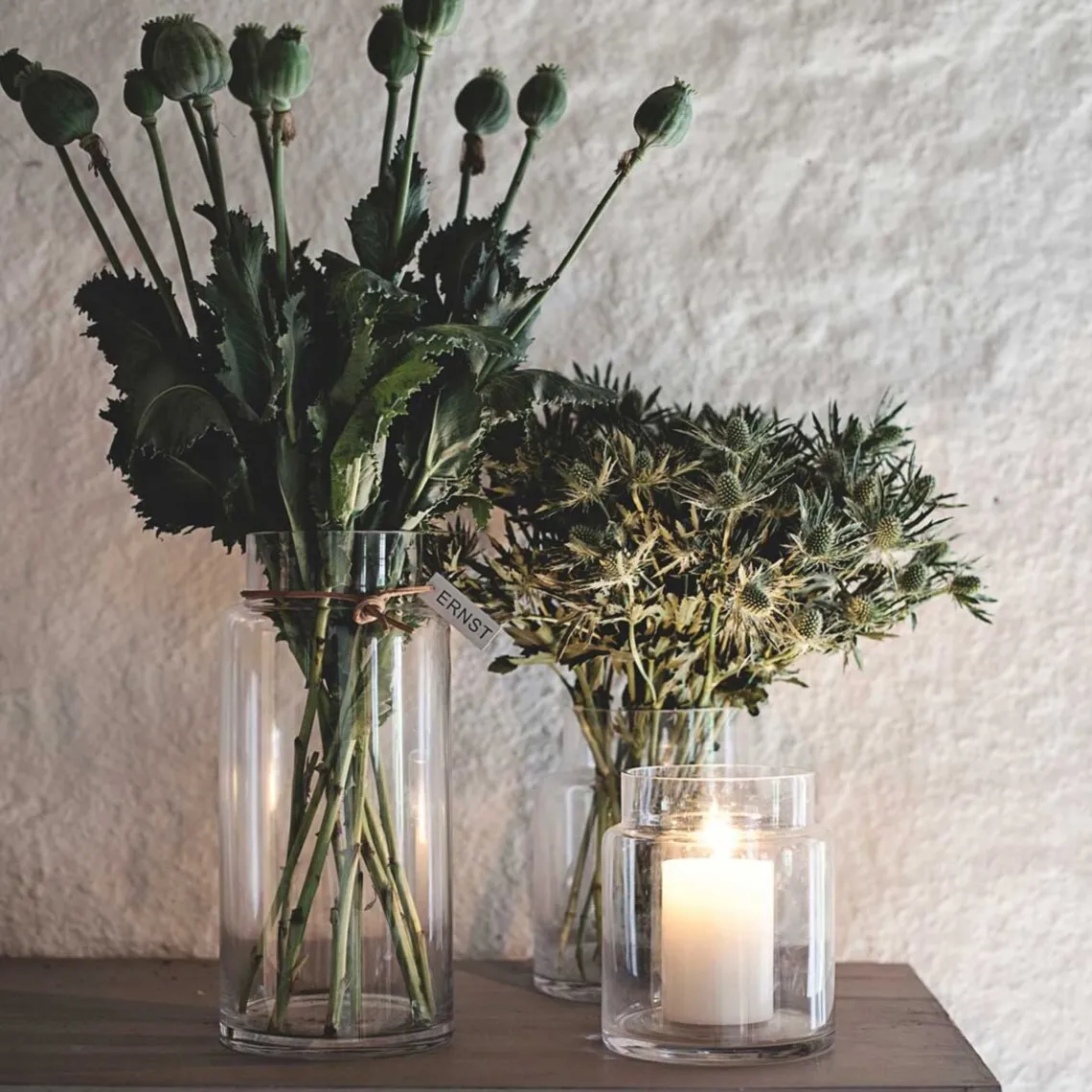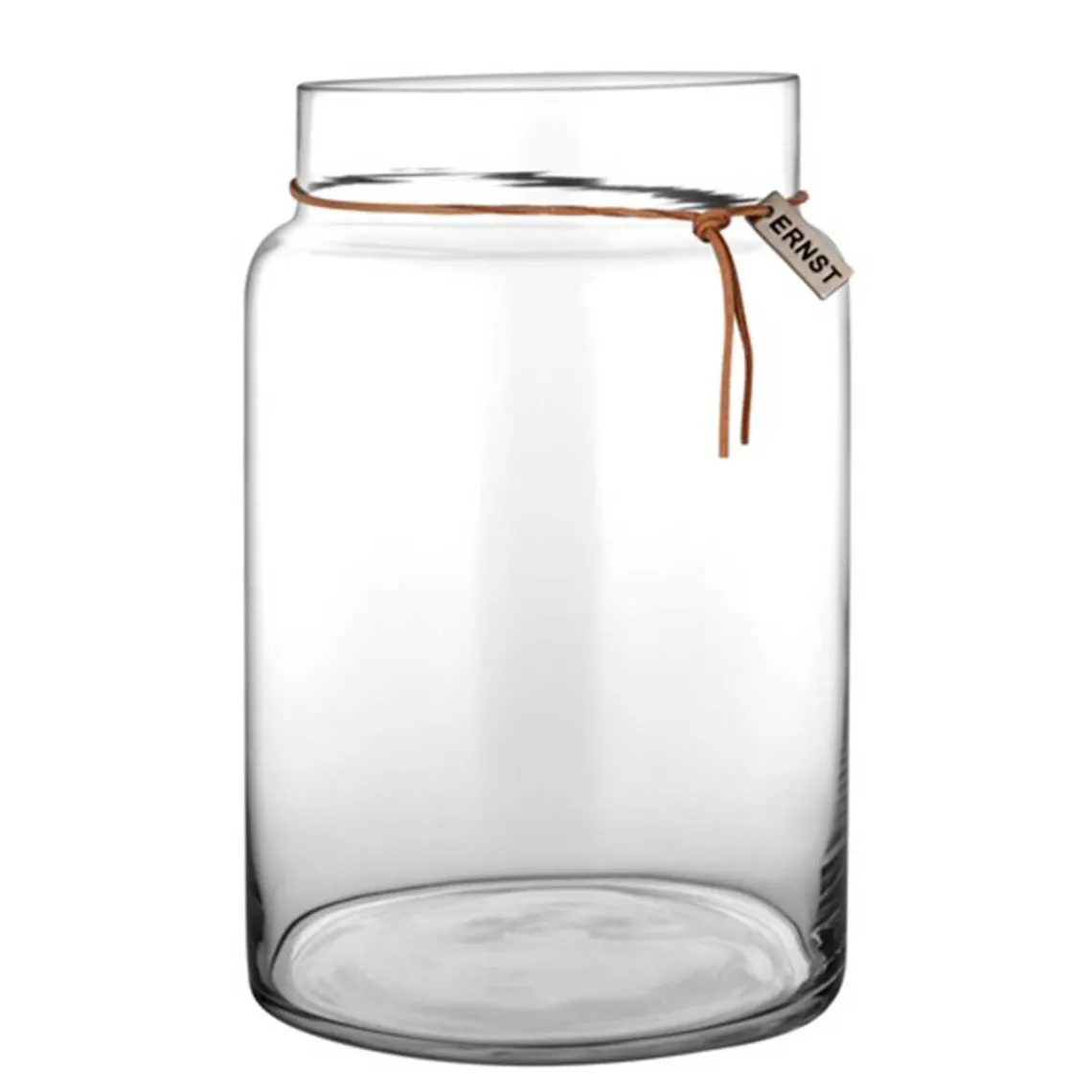 Bring naturen ind i dit hjem med ERNST krukke/vasen, perfekt til blomster, grønne planter eller dekorative grene. Det stilrene glas kombineret med læderbåndet skaber et elegant og tidløst udtryk, der passer ind i enhver indretning. Materiale: Glas