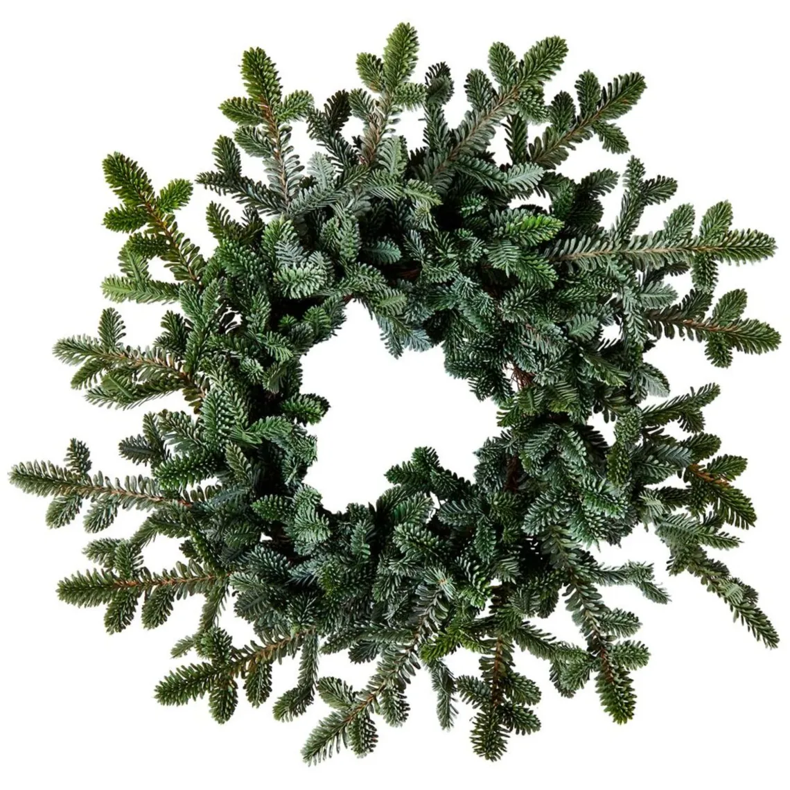 Her får du en flot grankrans. Denne krans kan du f.eks. have hængende på døren.