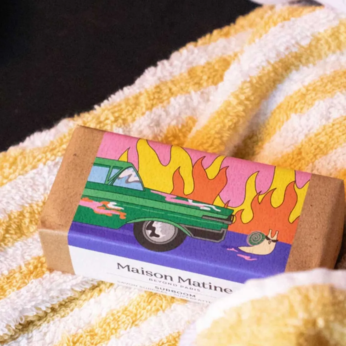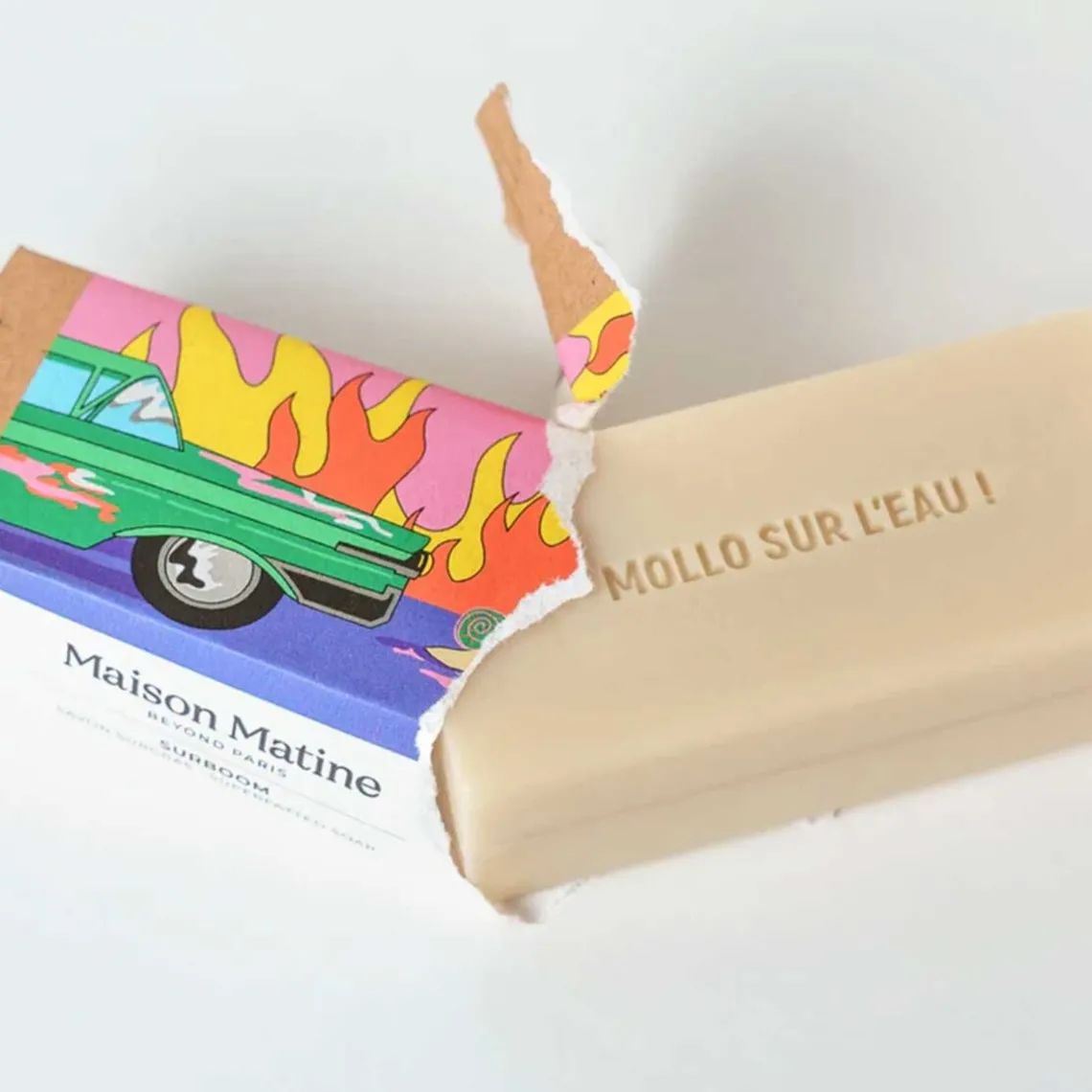 Håndsæbe – fast fra Maison Matine. Her får du en sæbe som er fra 94% naturlig oprindelse, og den er lavet med oliven- og kokosolie.