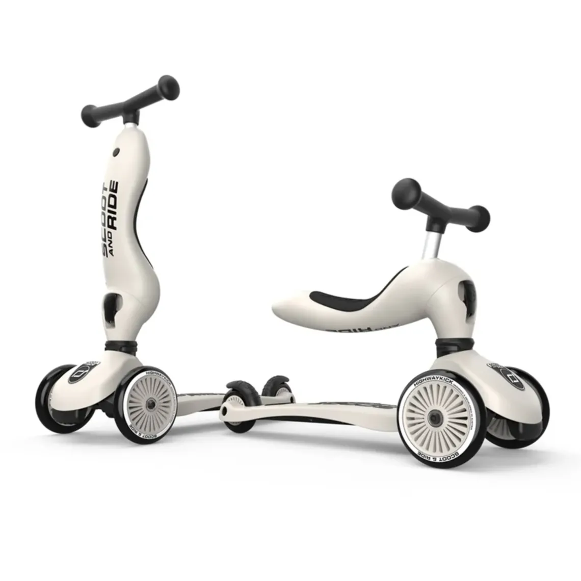 Scoot and Ride Highway Kick 1 er ideelt som barnets første køretøj, som både kan bruges som løbecykel og løbehjul. Highway Kick kan let omdannes fra løbecykel til løbehjul og omvendt, uden værktøj. Både løbecykelen og løbehjulet kan let indstilles i både sæde højden og styr højden.
