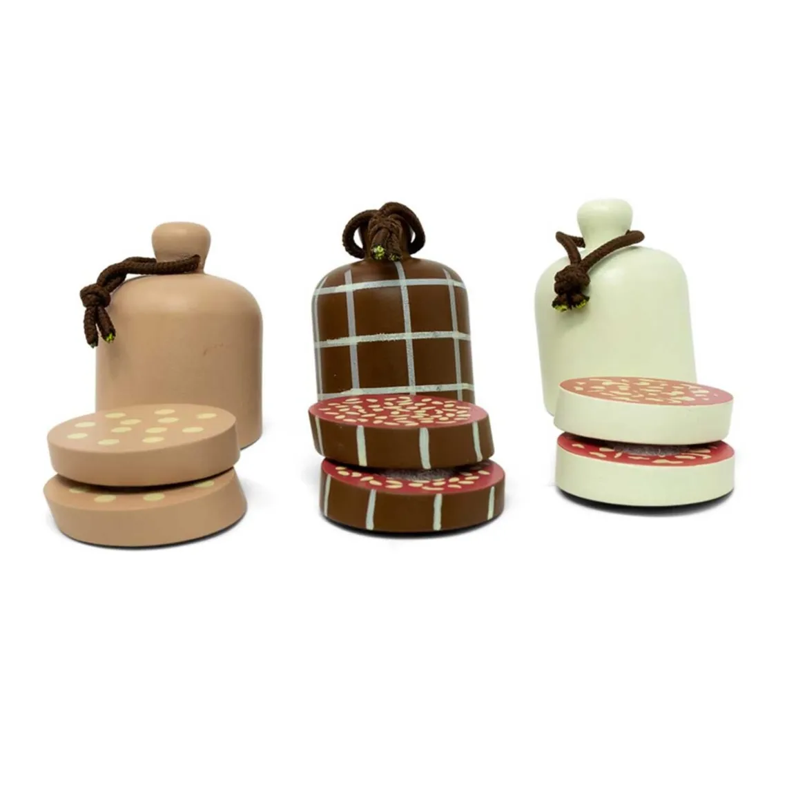 Genkendelig italiensk salami fra Mamamemo fremstillet i træ. Kødpølsen har 2 skiver, der kan “skæres” over og sættes sammen igen ved hjælp af velcro. Passer perfekt til legen med legekøkkenet.