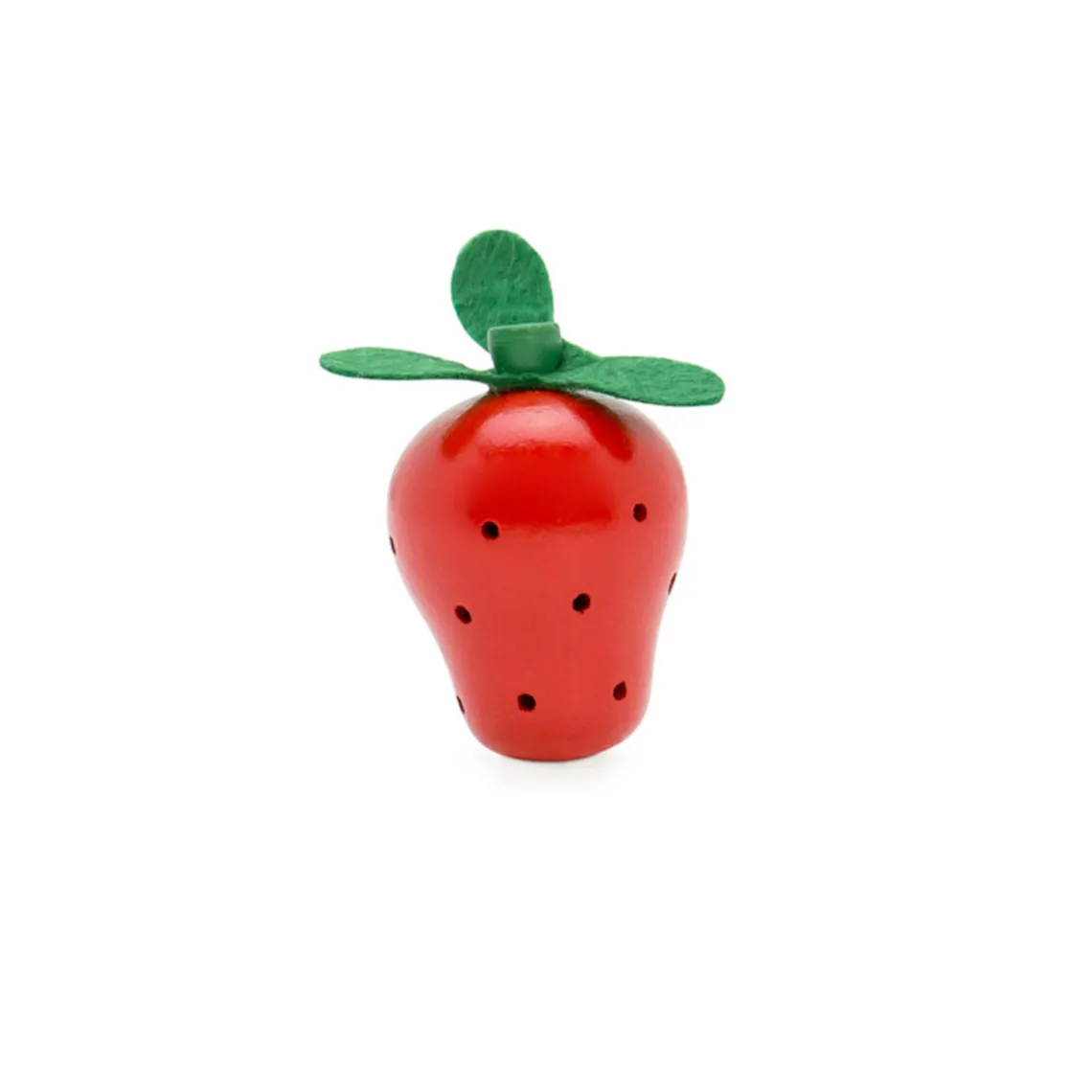 Jordbær i træ fra Mamamemo. Består af et jordbær med et grønt stykke fleece i toppen. Passer perfekt til legen i legekøkkenet.