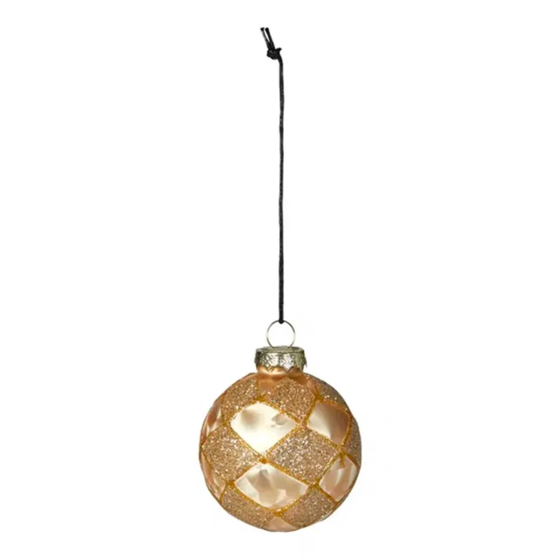 Smuk julekugle i glas, der tilfører et elegant og klassisk udtryk til din julepynt. Den delikate gold/champagne farve giver et varmt og sofistikeret skær på juletræet. Dimension: Ø6 cm
