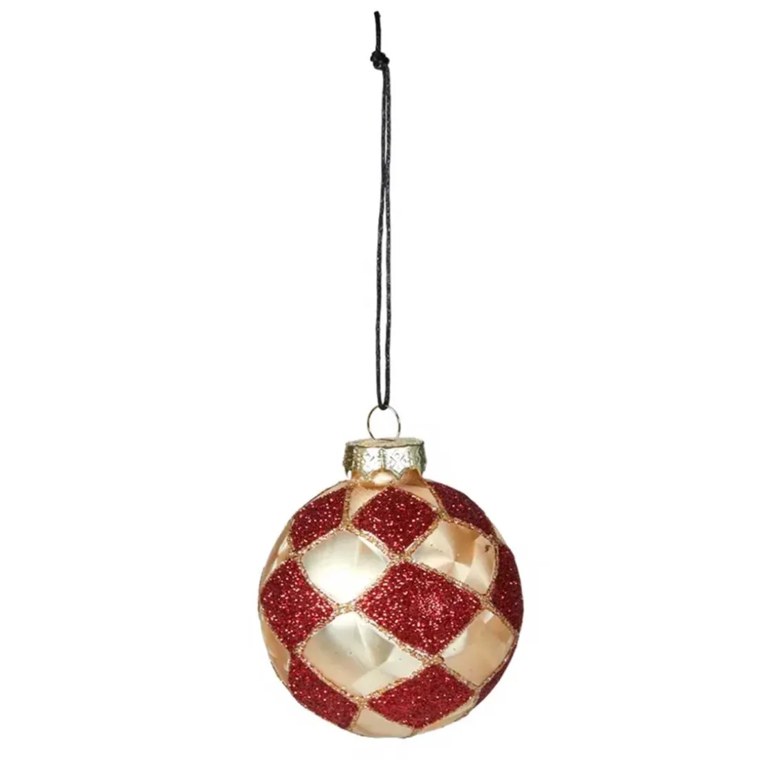 Smuk julekugle i rød og champagne, der bringer varme og elegance til juletræet. Den klassiske farvekombination skaber en festlig og sofistikeret stemning i hjemmet år efter år. Dimension: Ø8 x H8 cm