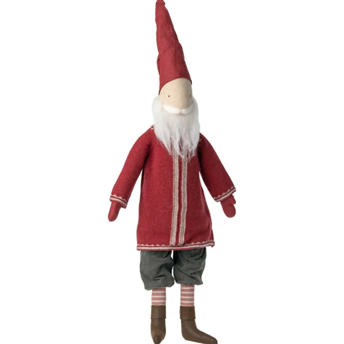 Denne charmerende lille julemand er klædt i en blød lammeuldstrøje og afslappede bukser. Sammen med sin kone skaber han en hyggelig julestemning og er et uundværligt dekorativt element i ethvert hjem. Mål:
