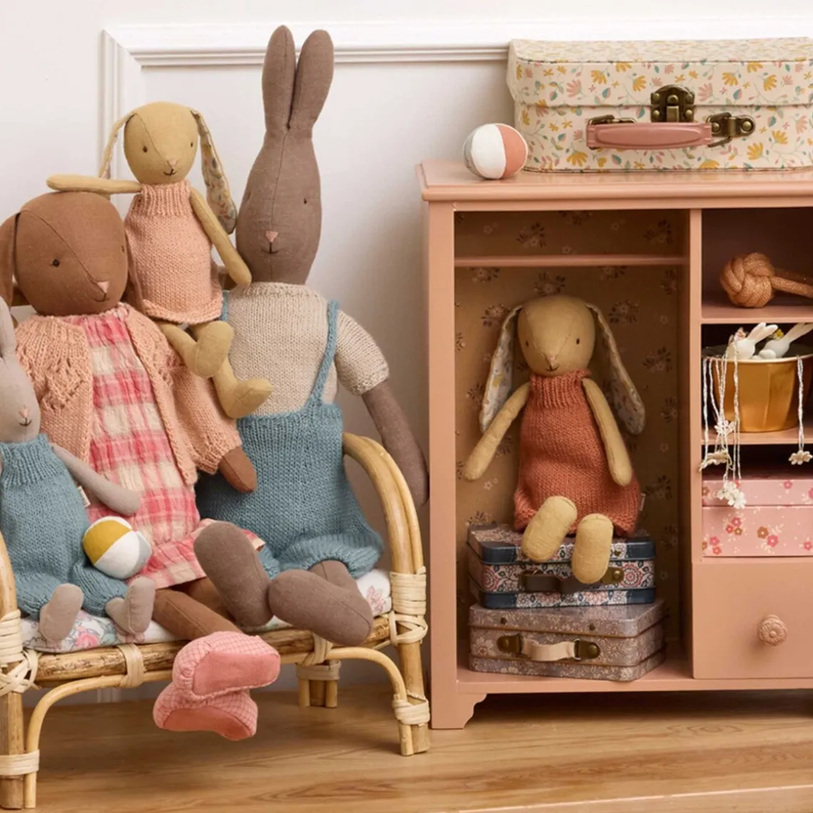 En klassisk kanin fremstillet i naturligt stof, der giver den et blødt og tidløst udtryk. Den er både skøn at kramme og fin som dekorativ detalje. Mål: H26 cm