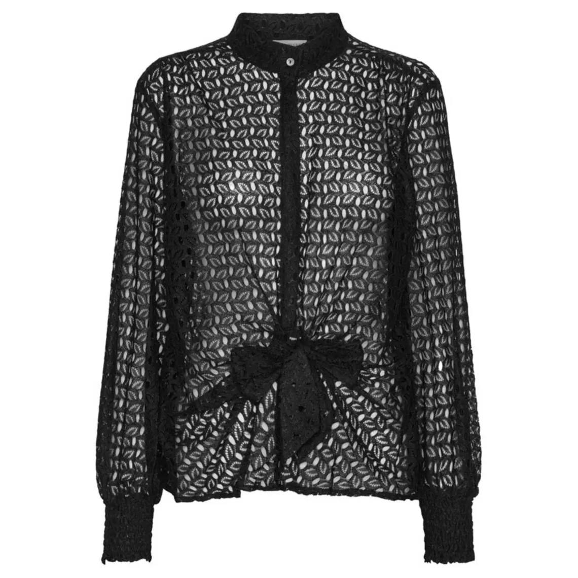Her får du en smuk blondebluse i sort. Denne bluse er med lange ærmer, og de smukke blonder tilføjer et feminint touch.