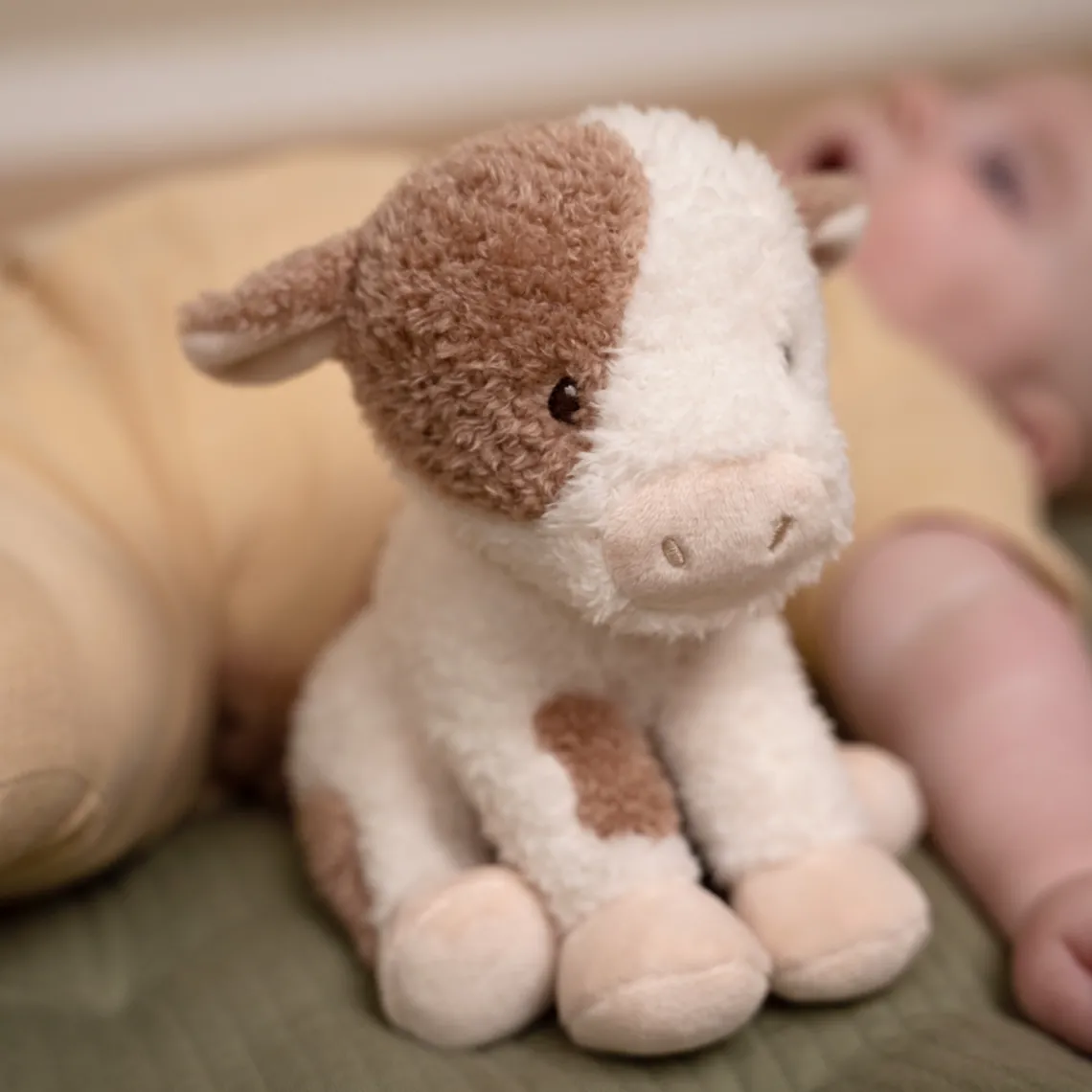 Denne søde ko elsker selskab og er altid klar til leg – både derhjemme og på farten. Hun er lavet af superblødt krøllet materiale, som gør hende helt perfekt til kram og nærhed.