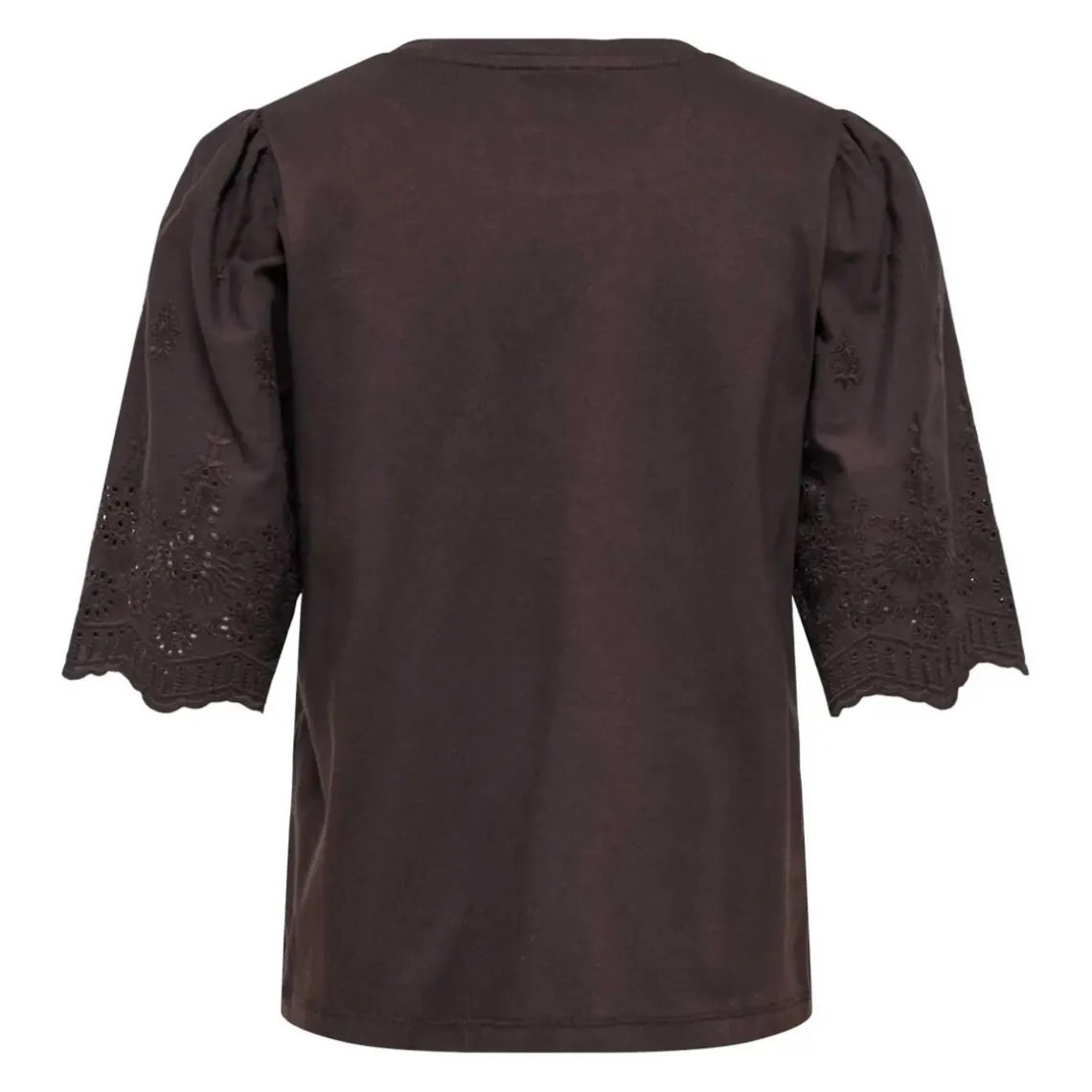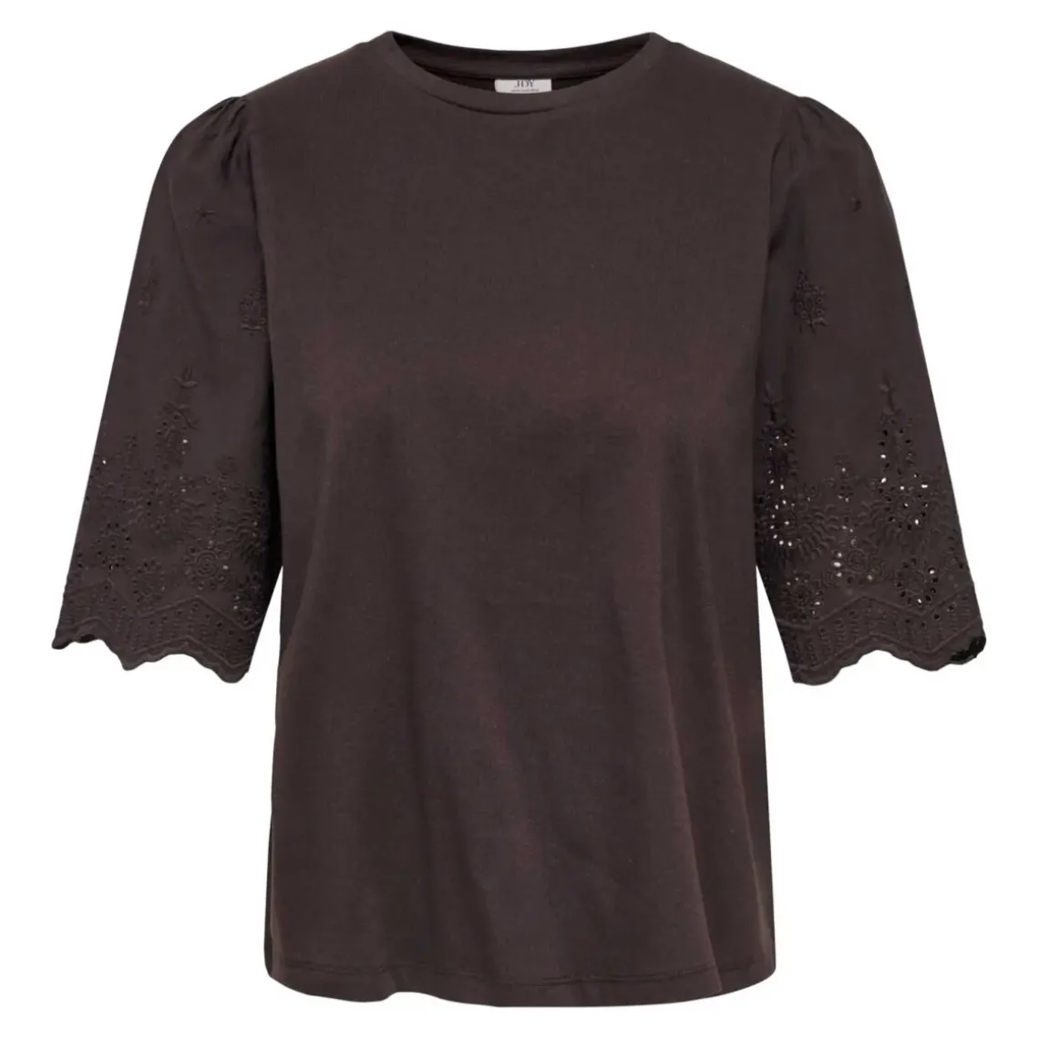 Fin og bæredygtig – denne top fra JDY er lavet af blød, økologisk bomuld og kombinerer komfort med delikate detaljer. De korte ærmer er pyntet med broderi, og den klassiske runde hals giver et tidløst og alsidigt look, perfekt til både hverdagsbrug og lag-på-lag styling. Materiale: 100% økologisk bomuld