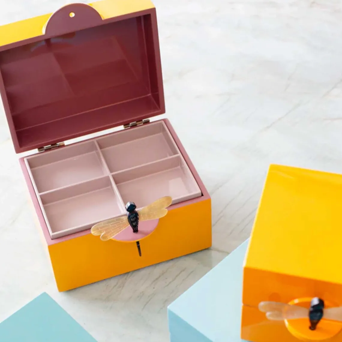 Lakskrin i den mindste størrelse; 12x12x10 cm. Fremstillet i MDF træ med 13-15 lag lak. 30x20x12 cm.
