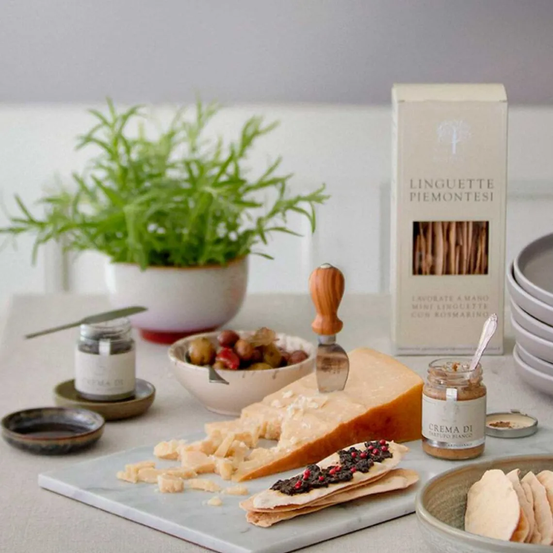 Deres Linguette, krydret med havsalt og rosa peberkorn, giver en autentisk smag af de traditionelle, italienske brødstænger samt en god dybde og aroma, som gør dem til et lækkert supplement til fx antipasti eller en god salat. Vi anbefaler dem sammen med vores trøffelcremer og som supplement til vores parmesan. Indhold: 120 g