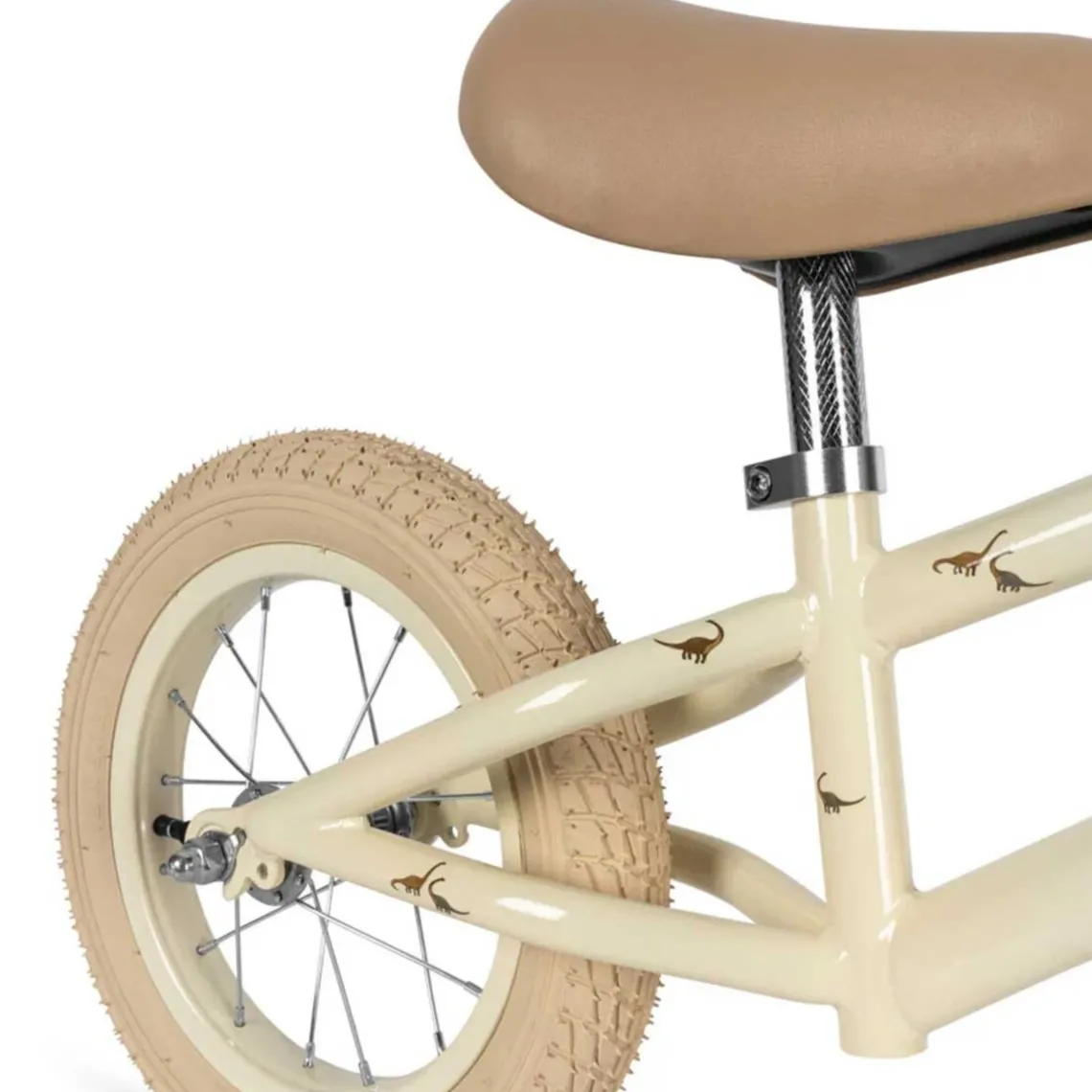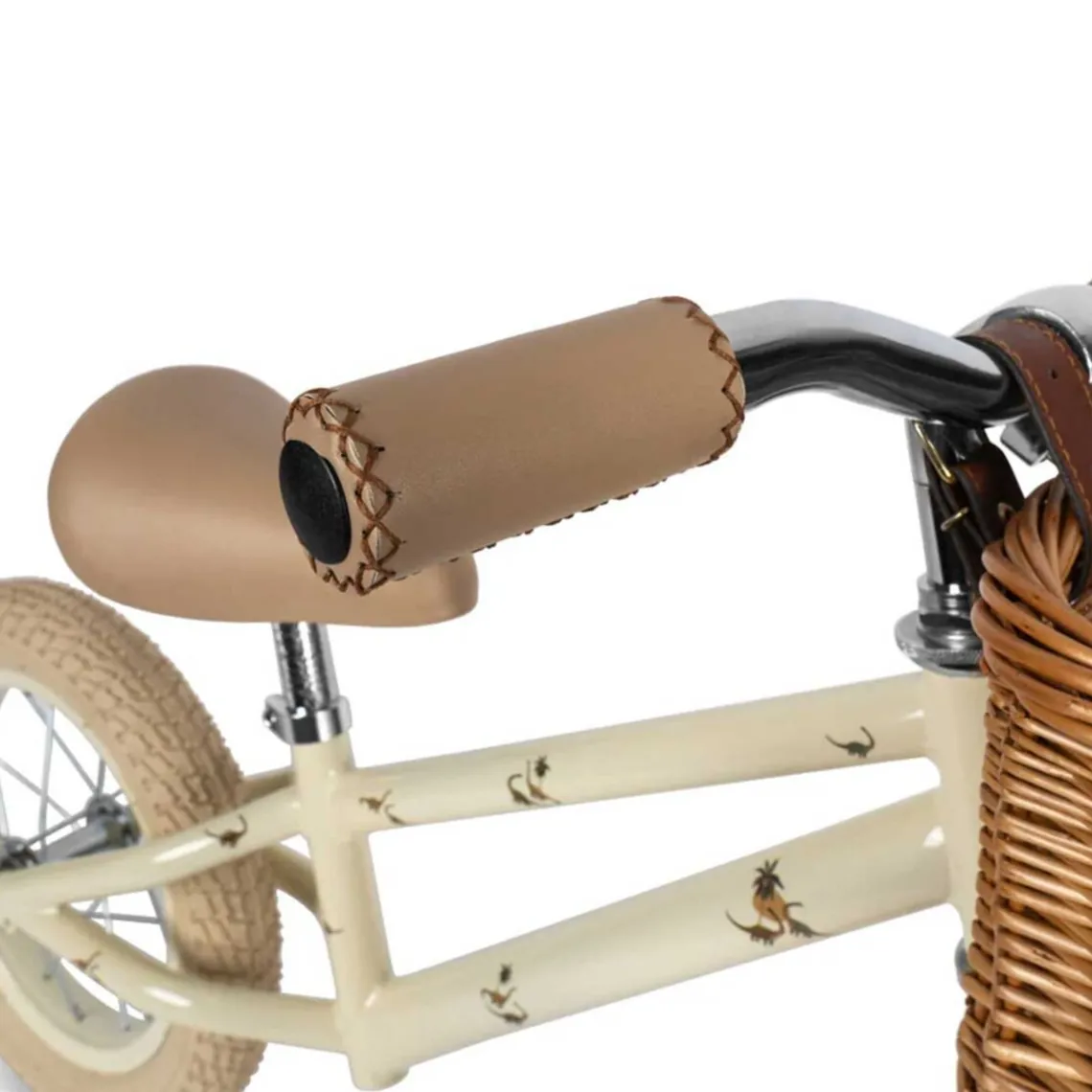 Et let design med en robust stålramme, der er let at køre på og let at bære, når de små fødder bliver trætte. Materiale: stel og klokke i stål, styr og sæde i kunstlæder, hjul af gummi, kurv i flet H: 63 cm x B: 44 cm x L: 86 cm