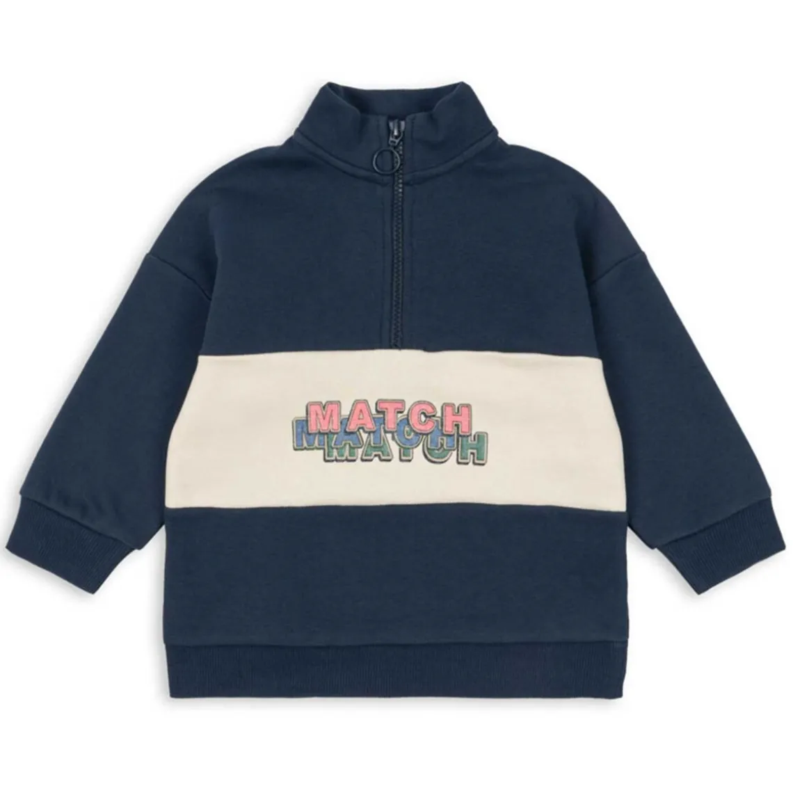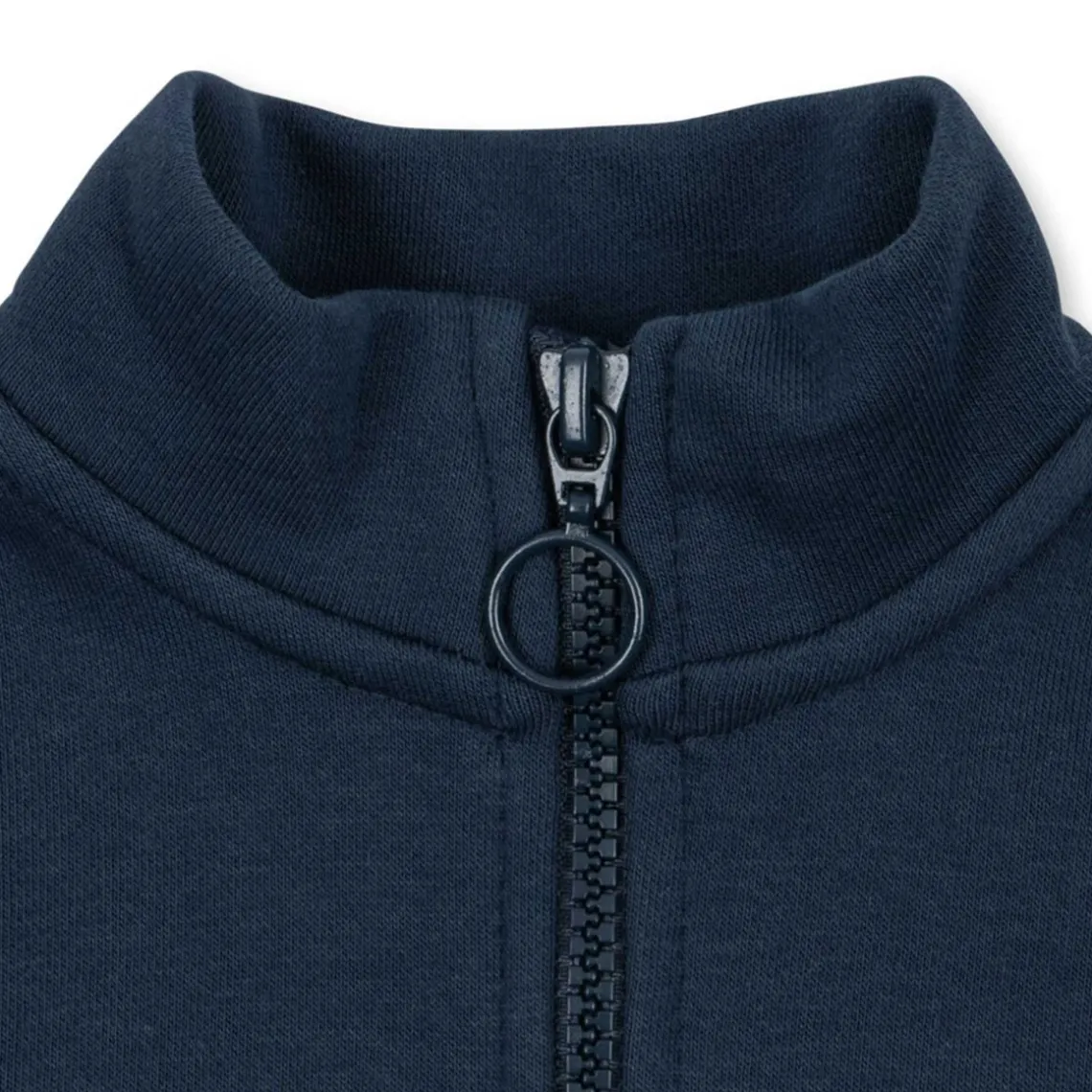 Blød sweatshirt i klassisk half-zip design med høj krave og lynlåslukning. Materiale: 90% økologisk bomuld, 10% polyester