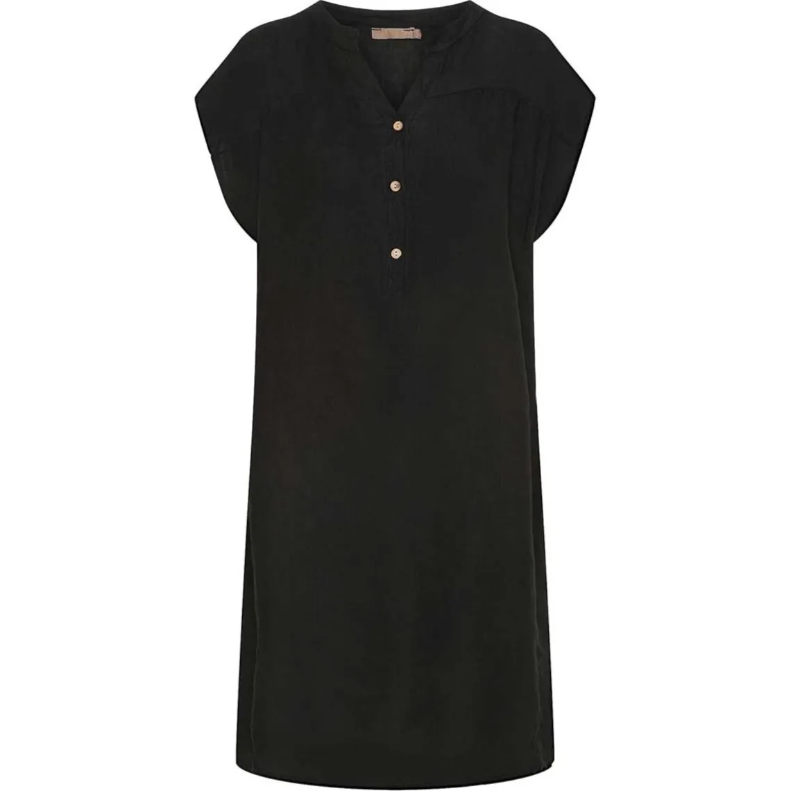 Designet er enkelt med feminine detaljer som v-udskæring, diskrete syninger og lommer i siden. Den alsidige sorte farve gør den let at style med alt fra farverige accessories til klassiske sandaler eller støvler.