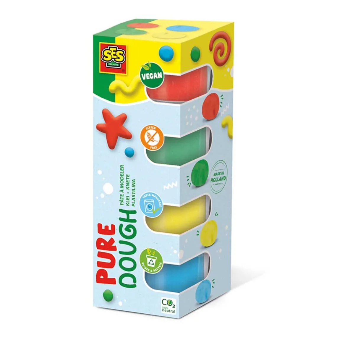 Indhold modellervoks: Grøn 90g, gul 90g, lyseblå 90g, rød 90g. Produceret i Holland