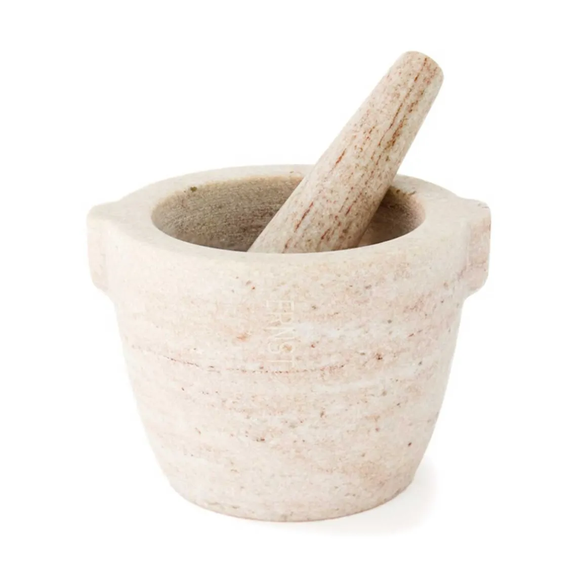 ERNST morter i marmor er ideel til de små opgaver i køkkenet, hvor krydderier eller urter skal mortles. Den er både funktionel og dekorativ og kan med fordel stå fremme, også når den ikke er i brug, da den tilfører hjemmet et elegant og tidløst udtryk. Materiale: marmor