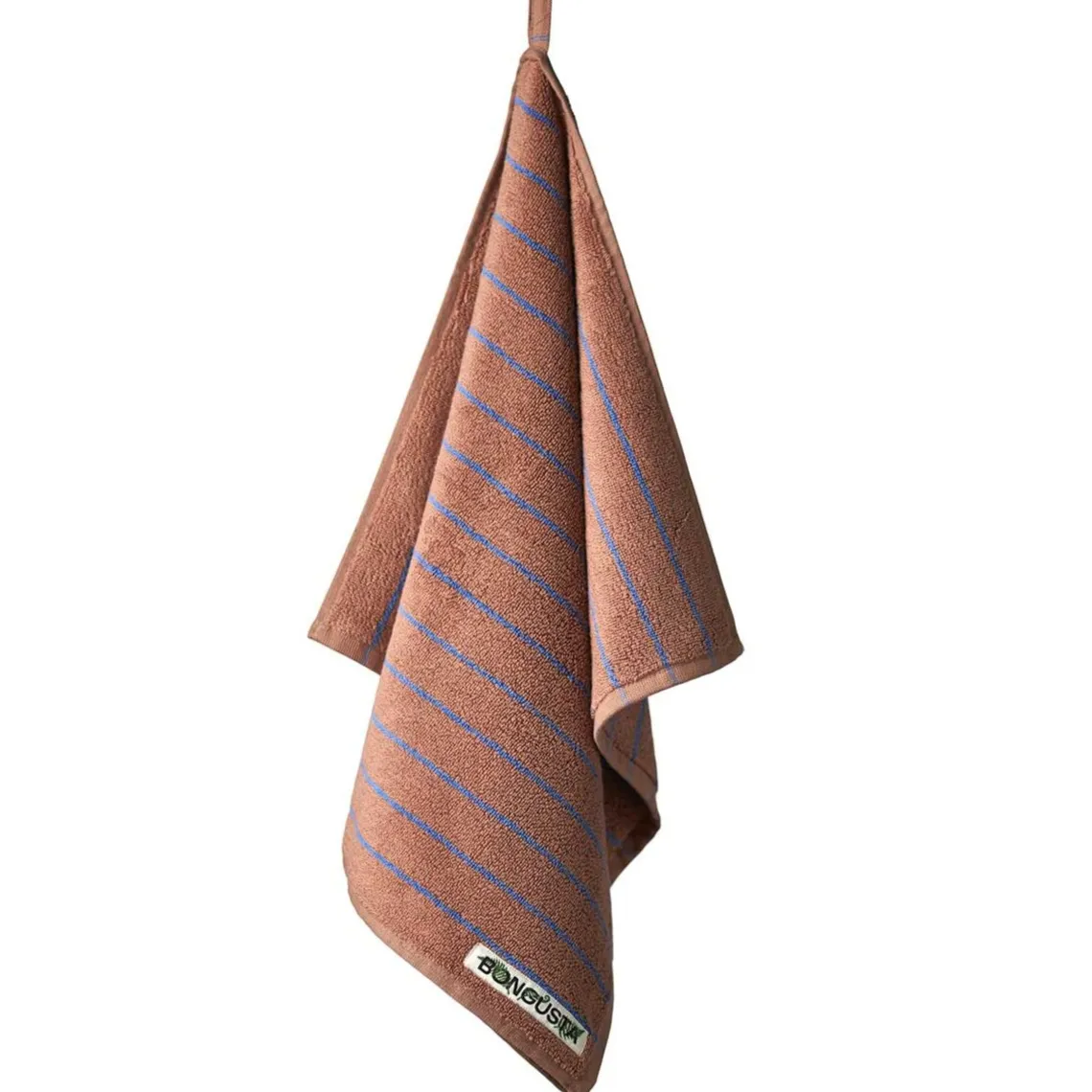 Det dekorative, broderede Bongusta brand-logo tilføjer et elegant touch til designet. Den tykke frottéoverflade sikrer en blød og behagelig følelse mod huden. Håndklædet har en smart løkke, der gør det nemt at hænge det op.