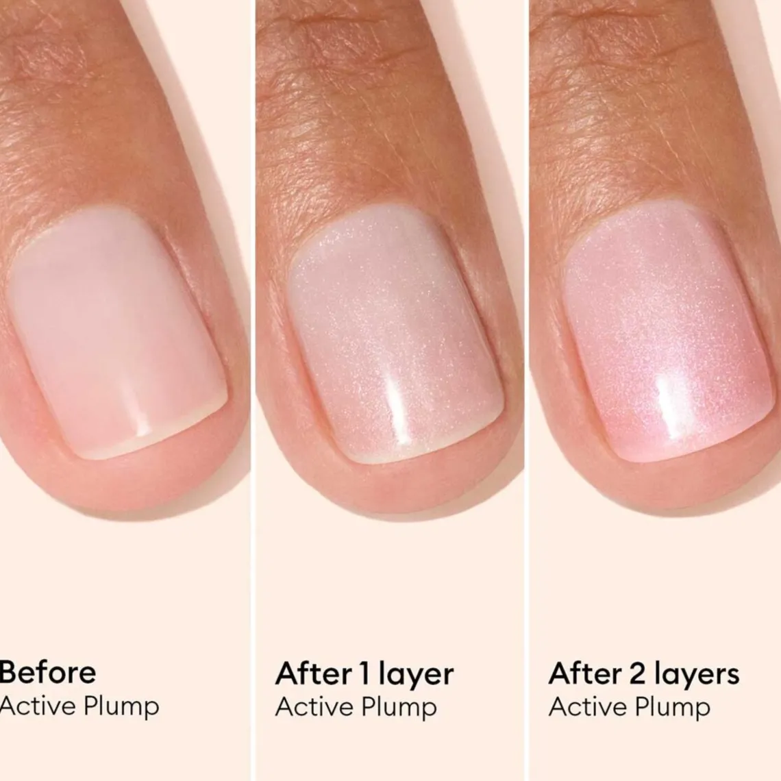 Active plump giver hydrerede, synligt fyldigere negle! Denne hybrid mellem neglepleje og makeup er fyldt med kollagen og skaber en volumengivende effekt, samtidig med at den efterlader en smuk, perlemoragtig babyrosa finish. Med en formel, der er 74,5% plantebaseret, fugter og nærer Active plump neglene i dybden. Fyldt med plantebaseret kollagen og ferskenekstrakt arbejder den for at styrke og pleje neglene, hvilket giver dem et sundt og fyldigt udseende.
