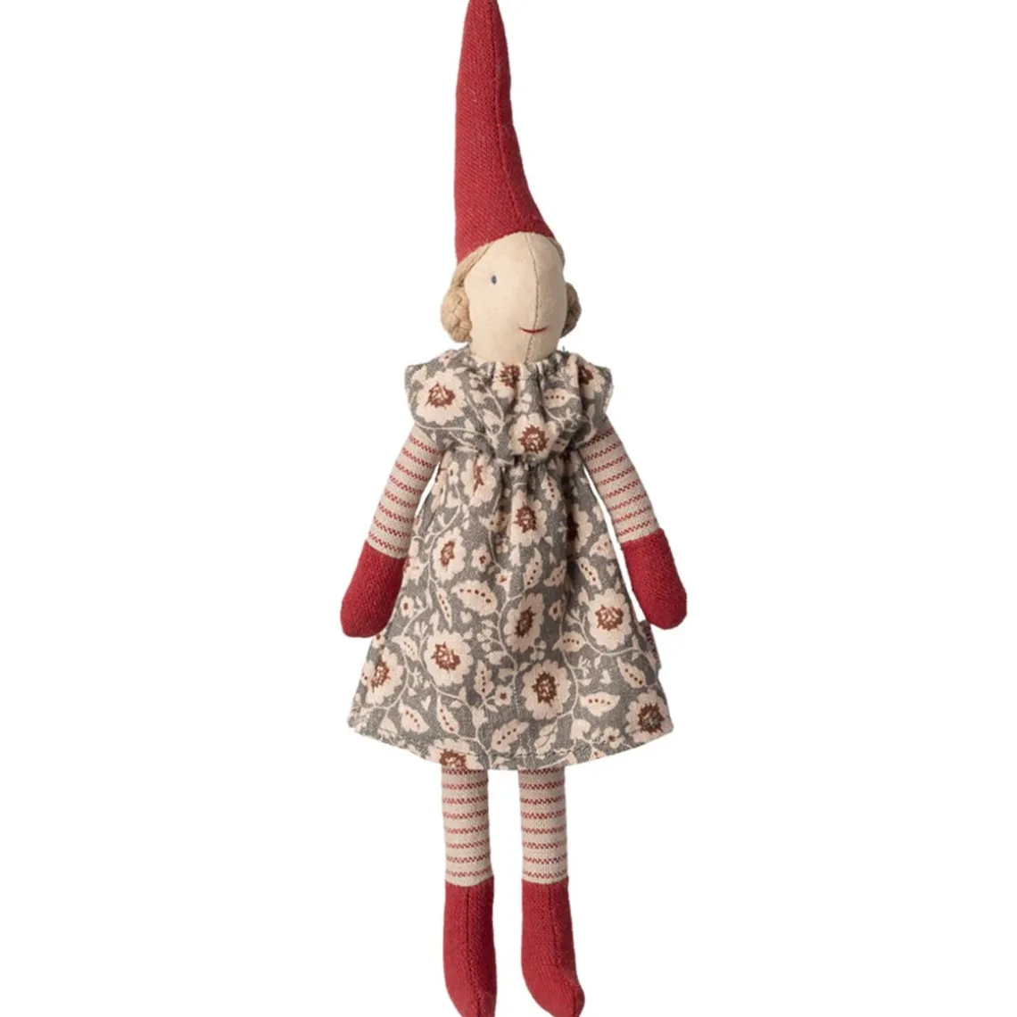 Mailegs nissekollektion byder på et væld af charmerende figurer – alle iført smukt juletøj i eksklusive materialer. Hver nisse har sit eget udtryk og kan nemt mikses og matches på tværs af størrelser og kollektioner for at skabe en hyggelig og personlig julestemning. Størrelse 1 har magnet i hænderne og venstre fod, så den kan holde fast i små accessories eller sættes i forskellige positioner. Mål: H26 cm
