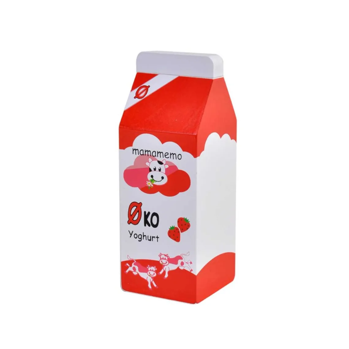 Lækker økologisk yoghurt med jordbærsmag fra MaMaMeMo. Den kan sælges i købmandsbutikken, såvel som den kan serveres for bamserne.