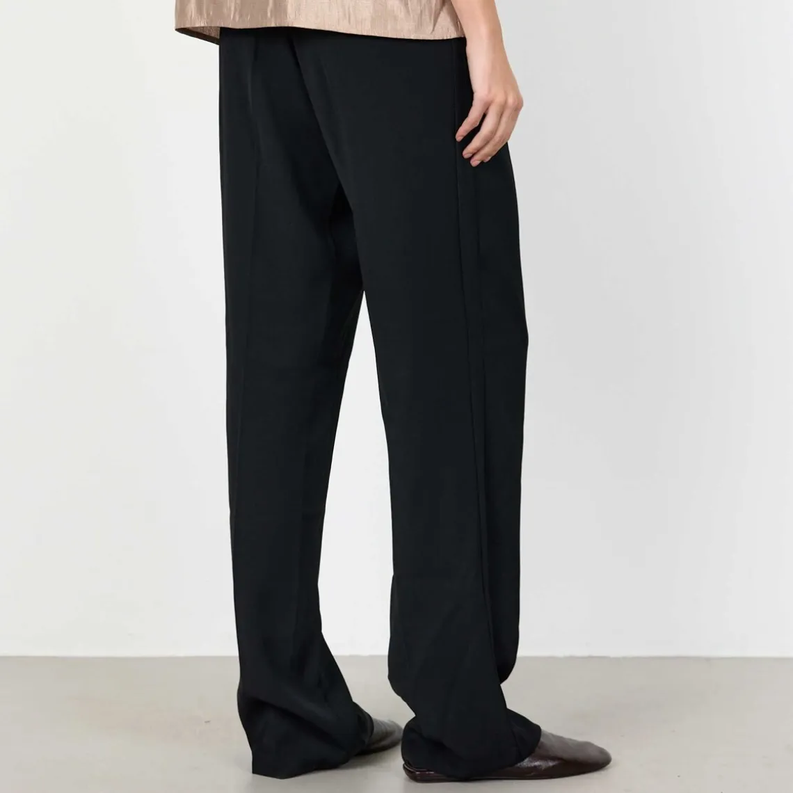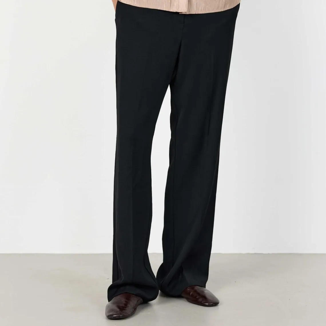 OMIRA 1 bukser har et elegant design med lige ben, klassisk linning og fine læg, der giver et sofistikeret og fuldendt udtryk. De kan styles med en sprød skjorte for et mere formelt look eller en afslappet strik til hverdagen, hvilket gør dem alsidige i garderoben. Materiale: 100% genbrugspolyester