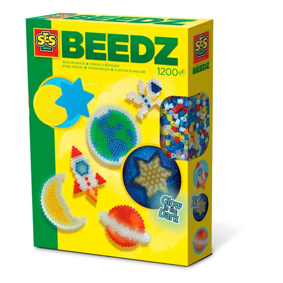 Fint perlepladesæt fra SES Creative med 1200 perler. Pakken indeholder plader med stjerne og planettema. Lad dit barn gå i det kreative hjørne med perlerne og leg med farver og former. Der medfølger strygepapir. Egner sig til børn fra 5 år. CE-mærket.