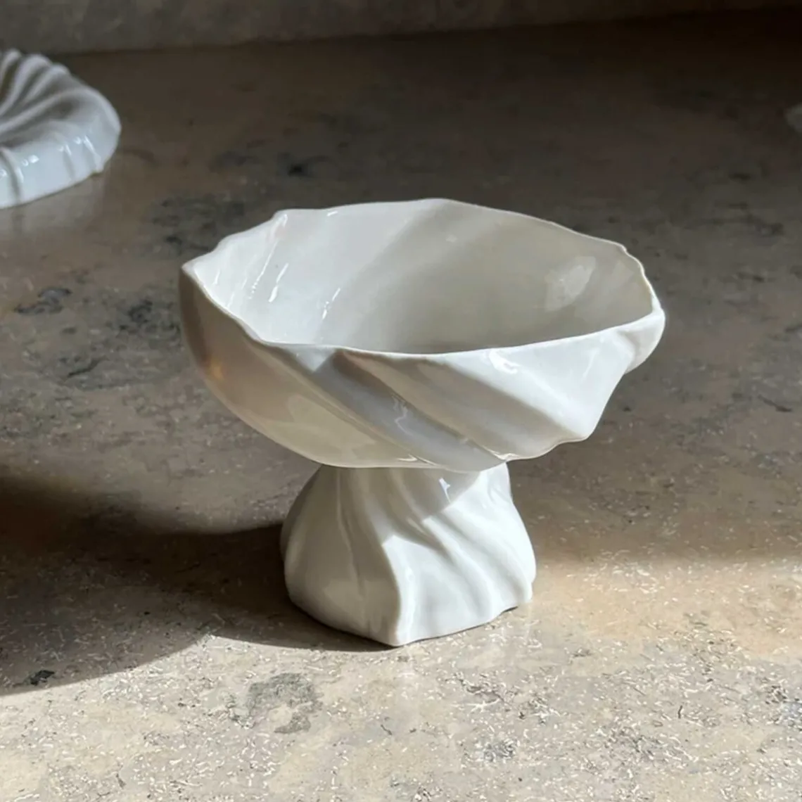 Overfladen er inspireret af den bølgede sandbund, når vandet trækker sig tilbage og blotter den nøgne havbund – det helt særlige ved dette foranderlige område. Opsatsen er håndlavet, og der kan forekomme små variationer fra opsats til opsats, hvilket gør hver enkelt unik. Mål: D11 x H9 cm