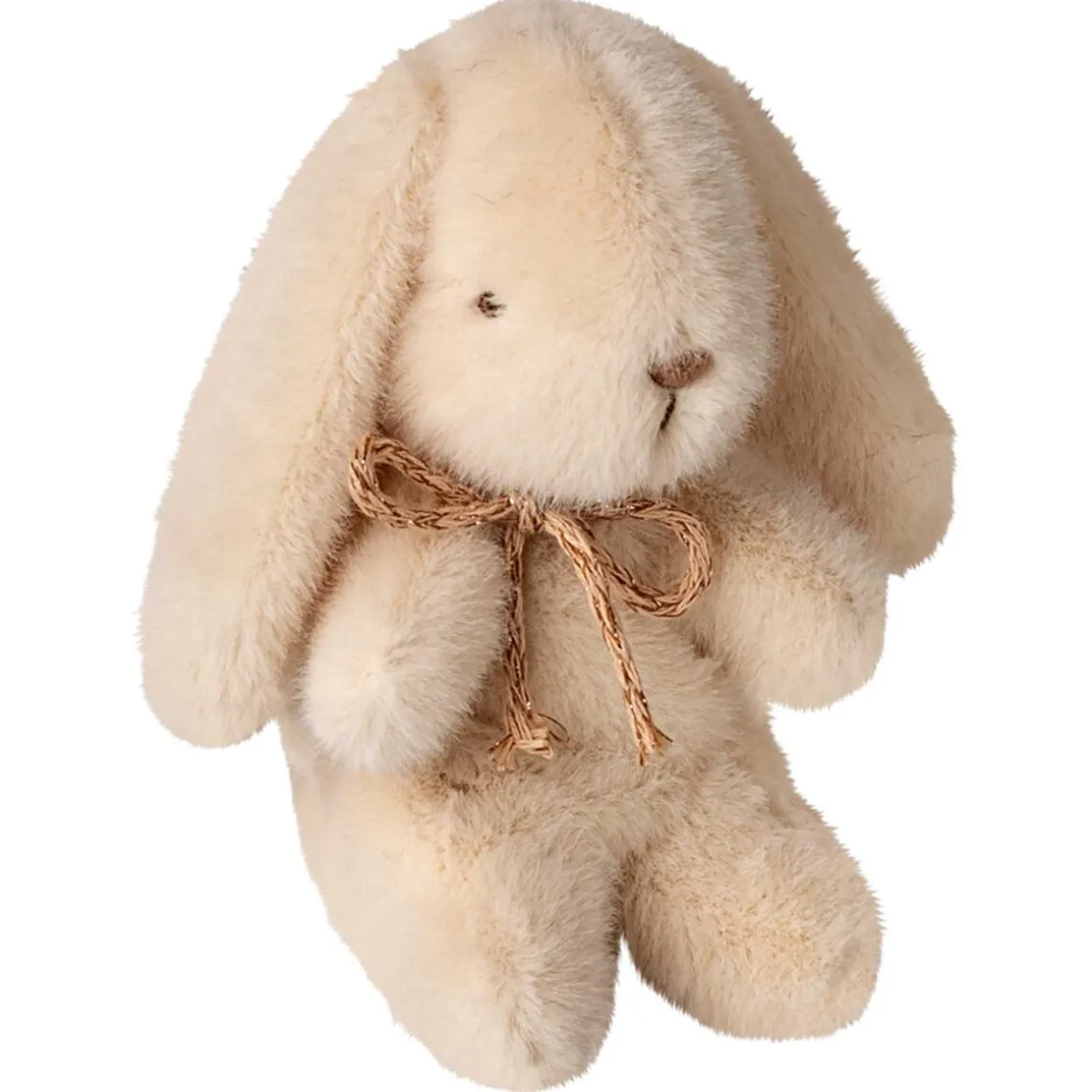 Denne Maileg kanin er lavet i blødt og unikt plysstof og har en fin sløjfe omkring halsen. Med sit søde og charmerende udtryk bliver den hurtigt en elsket ven for både børn og samlere. Materiale: polyester