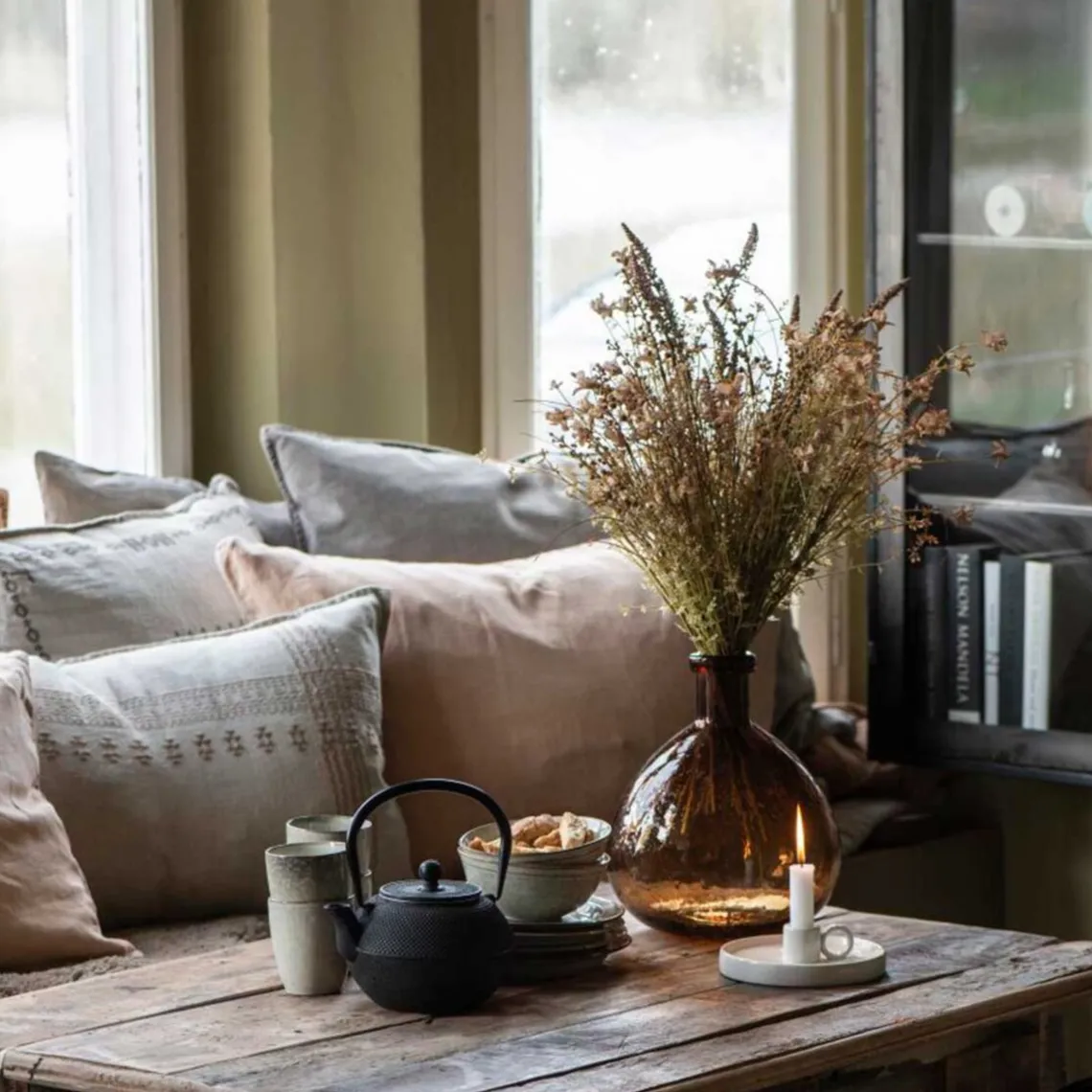 Dette firkantede pudebetræk lavet af 100% hør har derfor allerede det meget populære, let forvaskede look. Farverne får et vintage-udseende, der så smukt komplementerer afslappet interiør. Mål: 70 x 50 cm