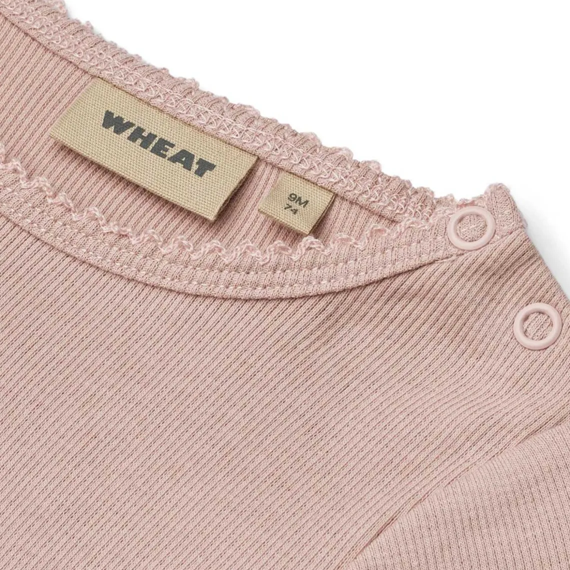 – Ribstruktur Wheats basis body er en sand klassiker i garderoben, når det kommer til småbørn. Denne body har trykknapper på den ene skulder samt i bunden for bedre komfort, når du skal klæde dit barn på. Brug bodyen som den inderste del i ethvert outfit, da den er blød at have tæt på huden. Man kan style bodyen afhængigt af vejr og årstid ved blandt andet at bruge den under en kjole, til et par matchende leggings eller på kølige dage med en sweater/strik udover. Standard 100 fra OEKO-TEX®