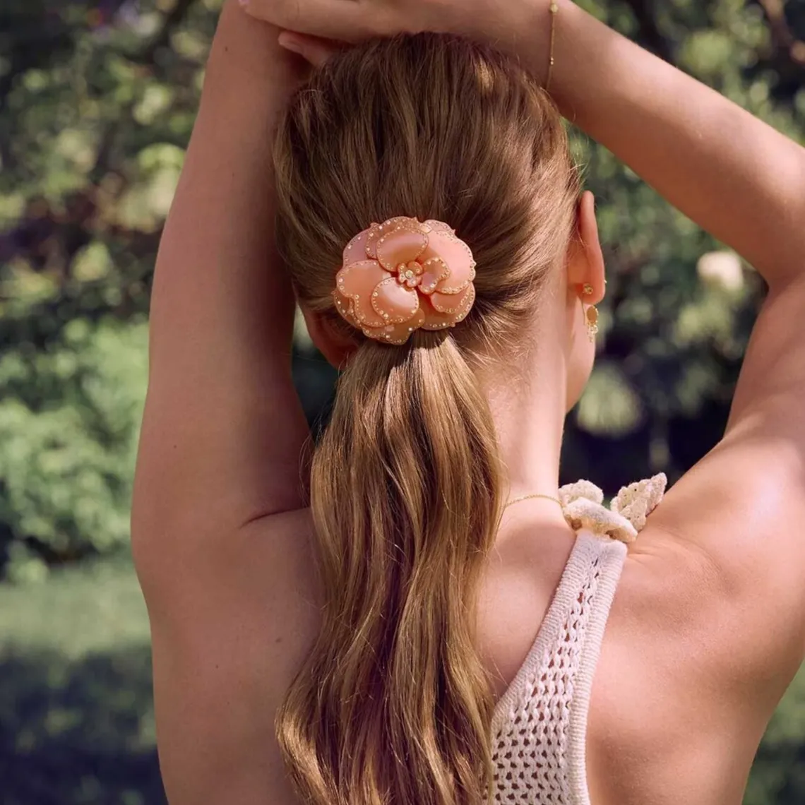Roas hårelastik fra Maanesten. Mærk den dragende feminine energi, som en blomst i fuldt flor udstråler. Den inspirerer dig til at omfavne dine følelser og lade selvtiliden blomstre.