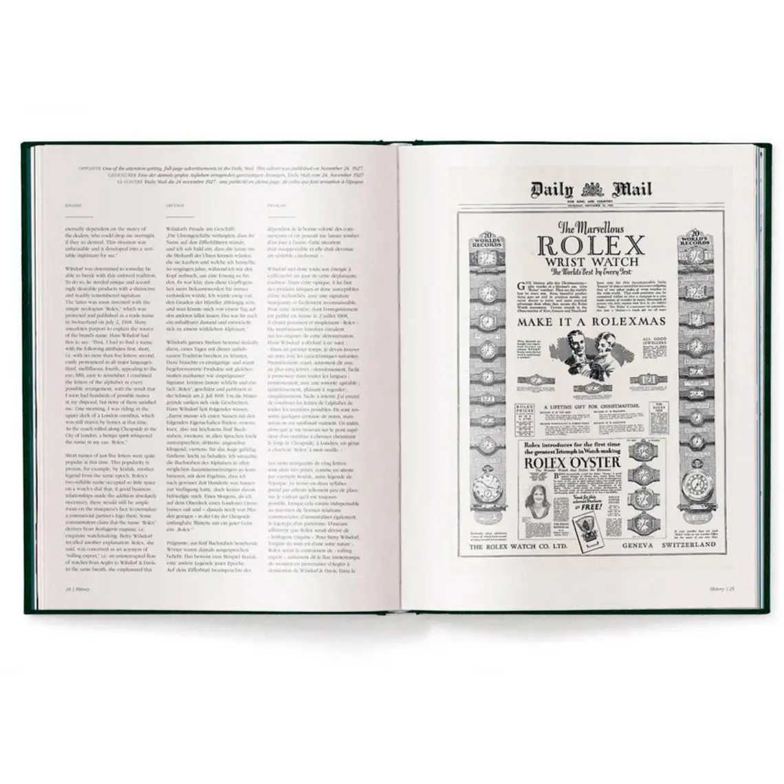 Det ultimative standardværk på Rolex-mærket kommer her i en ny udgave. Watch Book Rolex har længe været ubestridt en af debedste coffee-table-bøger, når det kommer til det luksuriøse urmærke. I den tredje reviderede udgavehar den succesfulde forfatter nu også inkluderet de nyeste modeller af denlegendariske Submariner- og Daytona-serie, mærkets traditionelle linjer, somallerede fejrer deres 70- og 60-års jubilæum. Også inkluderet i denneudgave: den helt nye 1908-linje og Celebrations-urskiven, samt adskillige nyereferencer til klassikere som Sky-Dweller og GMT-Master II.