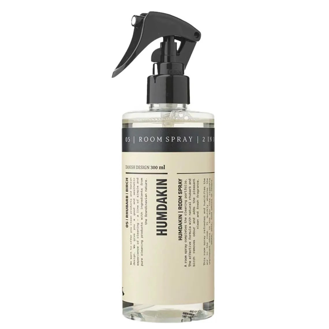 RUMSPRAY – 2-i-1, – 300 ml, pH værdi: 5,0 – 7,0 Nyd denne innovative rumspray, der ikke kun fjerner og neutraliserer dårlig lugt, men også tilfører rummet en fantastisk duft. Nyd den dejlige duft af rabarber og birk, som du også kender fra vores populære 05 håndpleje og 03 vaskeprodukter. En dejlig parfumeret alternativ til vores milde 01 room spray. Brug den på badeværelset, i køkkenet eller til at friske din opholdsstue op, inden gæsterne kommer. Også helt perfekt til bleskiftestationen eller andre steder, hvor der kan forekomme uønskede lugte.