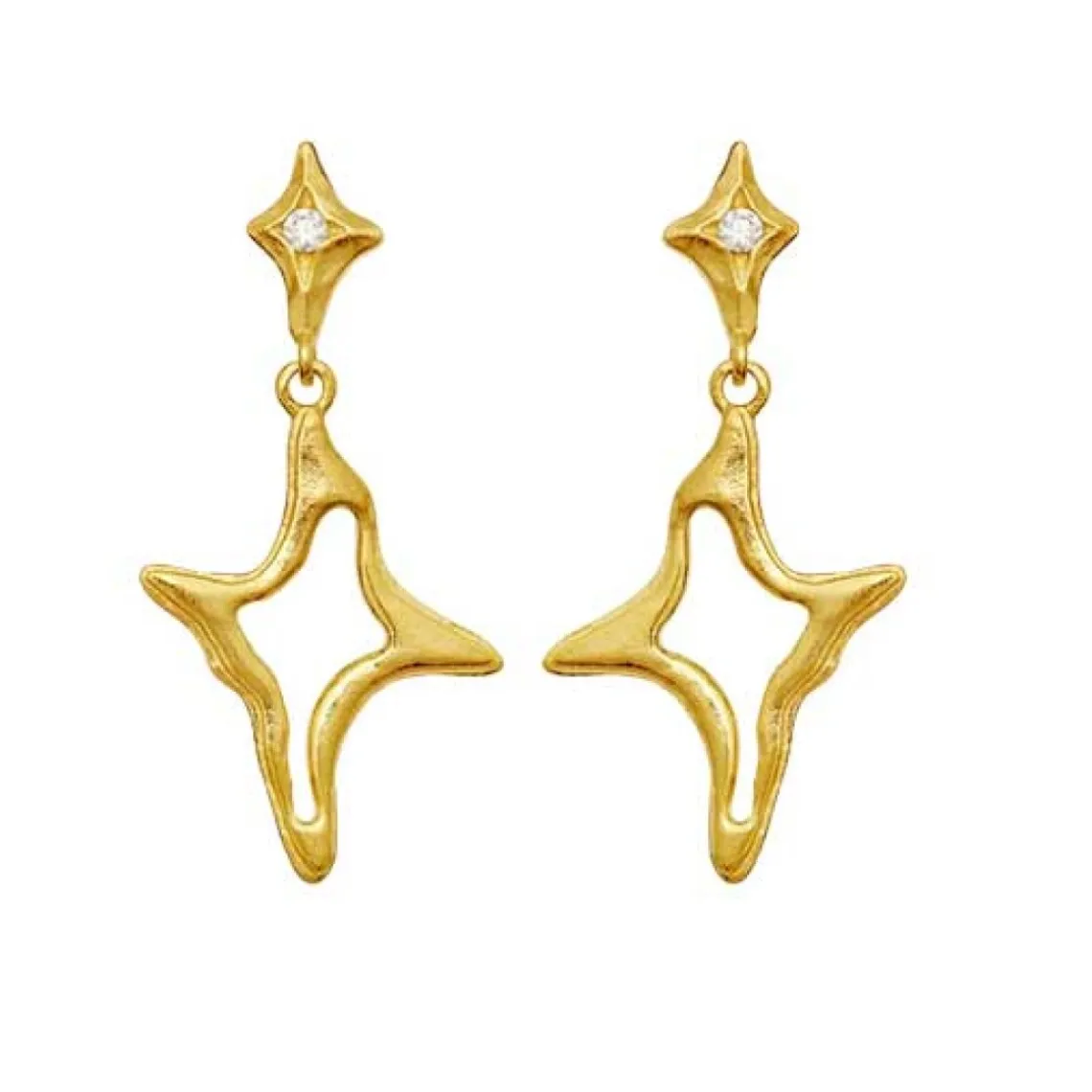 Roxy Øreringe udstråler elegance og styrke, inspireret af ægte originalitet. De svæver yndefuldt og fremhæver dit ansigt med glimtende hvid zirconia, der tilføjer et sofistikeret og feminint touch. Perfekte til både hverdag og fest, hvor du ønsker at bære smykker med personlighed og karakter. Materiale: Genanvendt sterling sølv (925) belagt med 18K guld, hvid zirconia