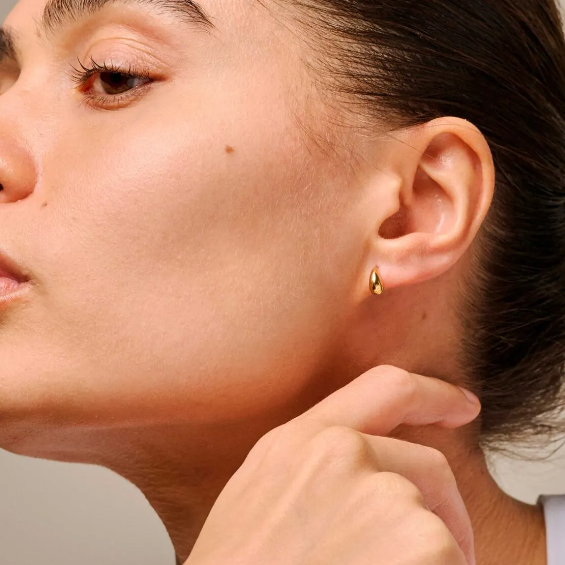 En dråbe af enkelhed og elegance. Sana Stud i 18 karat guldbelagt sterlingsølv har en blød, organisk form med blank finish, der fanger lyset og skaber et roligt, feminint udtryk. Det minimalistiske design gør Sana til et tidløst smykke, der fungerer smukt alene – men også kan kombineres med andre ørestikker for et moderne, personligt look. Kvalitet: 18k guldbelagt genanvendt sterlingsølv