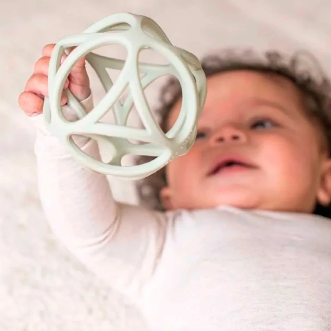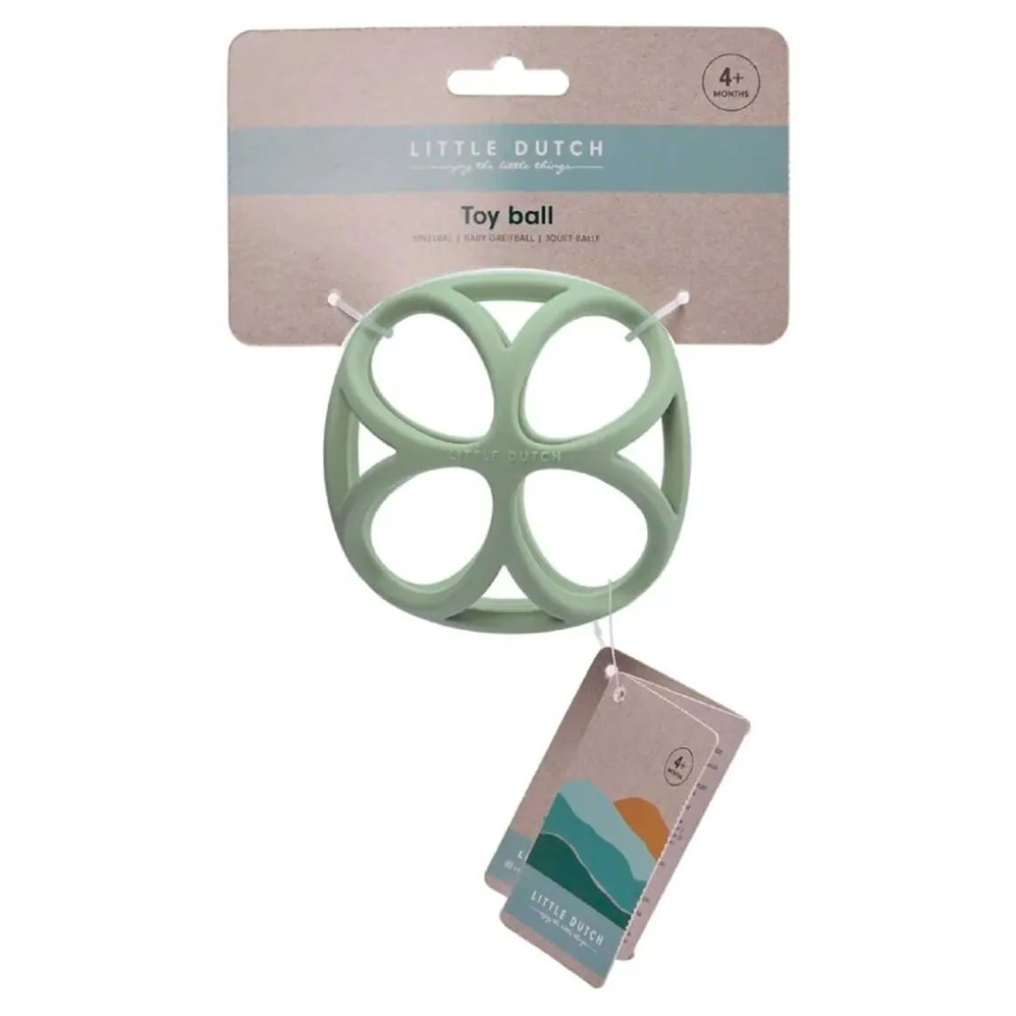 Little Dutch sansebold er perfekt til små hænder med sine lette, geometriske former, som gør den nem at gribe og lege med. Bolden er fremstillet i blød, 100% silikone, der både er behagelig at røre ved og sikker at tygge på, når barnets tænder bryder frem. Med en diameter på 10 cm er bolden let og ideel til sansestimulerende leg, samtidig med at den styrker barnets finmotorik. Leveres med praktisk hovedkort.