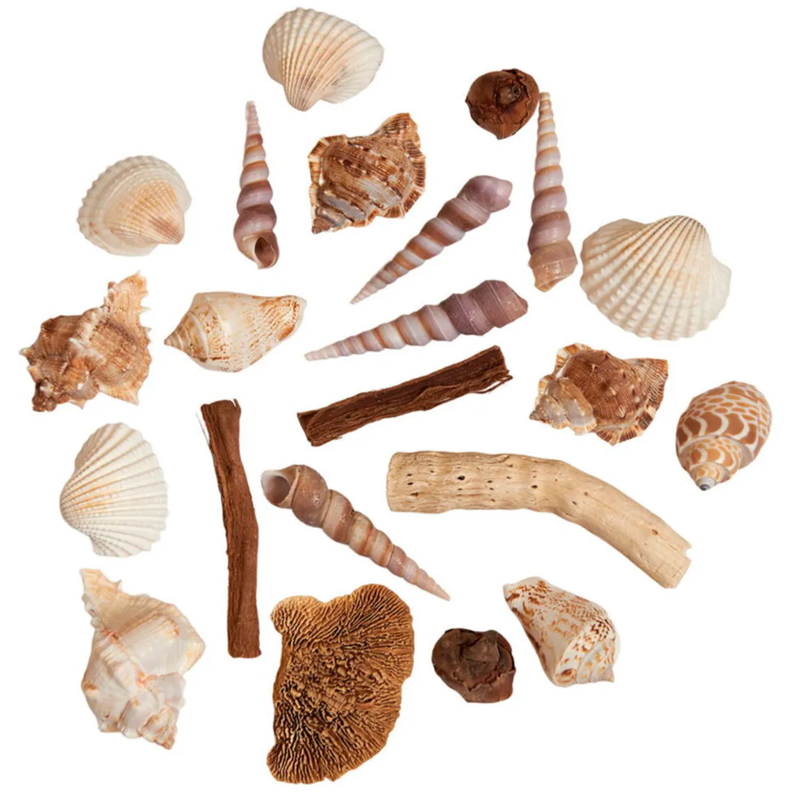 Skallerne er nøje udvalgt for deres æstetik og autenticitet og leveres i en dekorativ netpose – klar til brug eller gave.