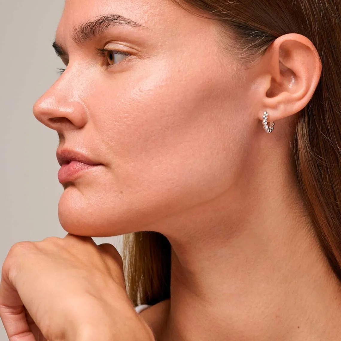 Disse små ball hoops, i 925 sterlingsølv, er et par super gode hverdagsøreringe, der er udformet i et klassisk design. De er simple, som vores classic hoops, men med et lidt mere cool og karakterfuldt udtryk. De små, sølvhoops er lette, så du kan med fordel style dem med andre øreringe, uden at få for meget tyngde på øreflippen. Ball hoops findes også belagt med 18 karat guld, samt i en større størrelse. 925S