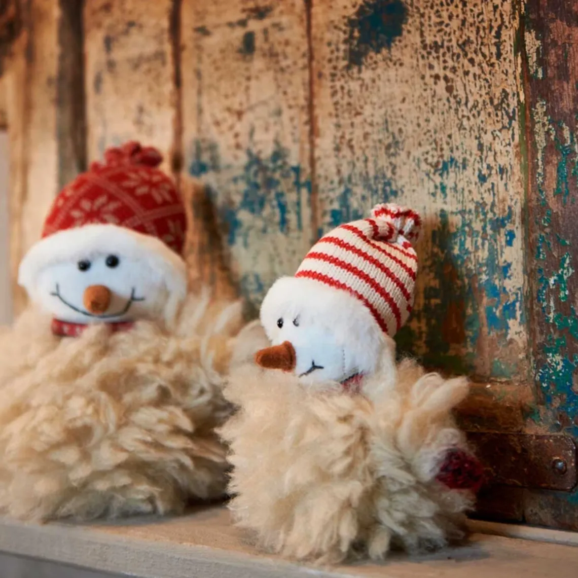 Her får du en sød lille snemand. Denne snemand har hue og tøklæde på. Den er super fin at have siddende sammen med dine nisser og mus.