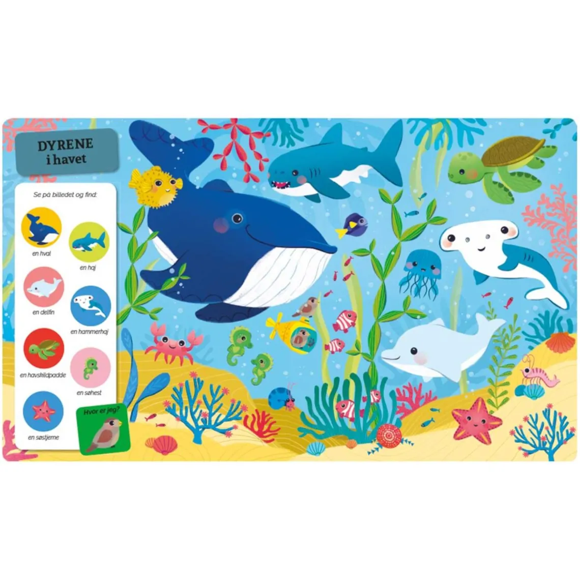 Sød og lærerig SØG og FIND bog på 18 sider med fine illustrationer. Kraftige og holdbare papsider, som de mindste selv kan bladre i og papomslag med blødt skum.