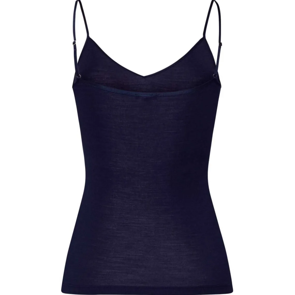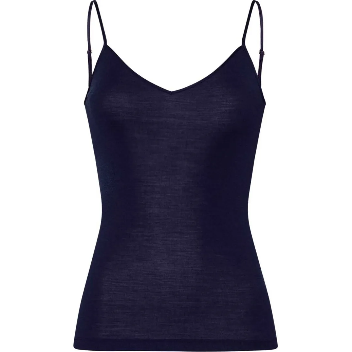 HANRO Woolen Silk Spaghetti Camisole Top er fremstillet i en let blanding af merinould og silke, der hjælper med at regulere kropstemperaturen og giver en luksuriøs følelse mod huden. Toppen har justerbare satin-stropper med metalbeslag for en perfekt pasform, sømløse sider og flad satinbeklædning langs den lette V-hals, hvilket skaber et elegant og flatterende look. Denne stilfulde og funktionelle camisole kan både bruges som isolerende lag under bluser og trøjer eller som en sofistikeret top på egen hånd. Materiale: 70% merinould, 30% silke