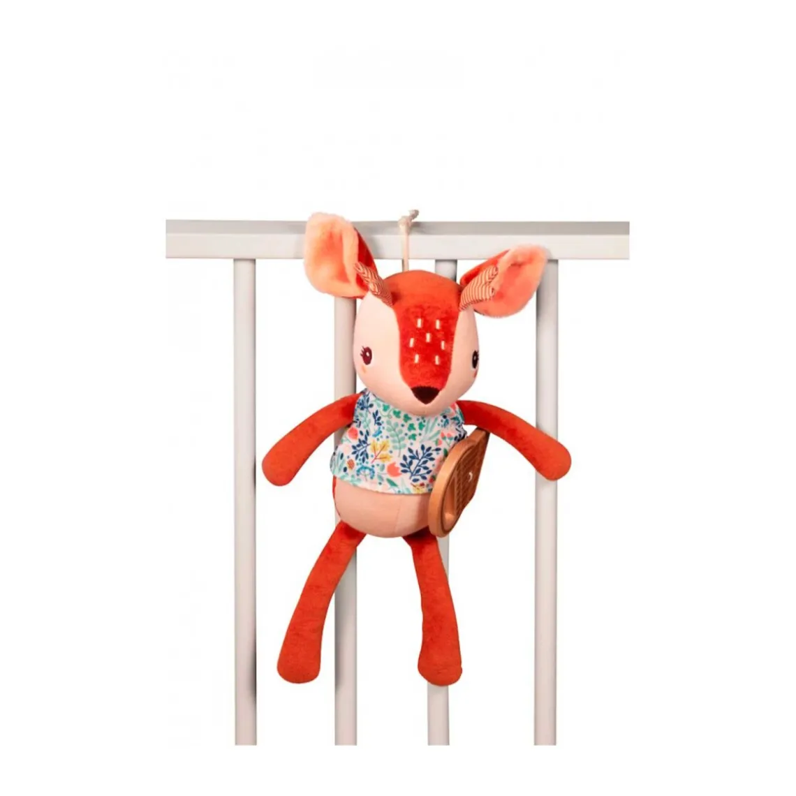 Blød og charmerende plysfigur i økologisk jerseystof, der spiller melodien Feelings, når træpanfløjten trækkes. Perfekt til sengetid, da musikken beroliger og hjælper babyen med at falde i søvn. Kan hænges på kravlegård eller tremmeseng med den medfølgende løkke. Maskinvaskbar efter fjernelse af panfløjte og spilledåse.
