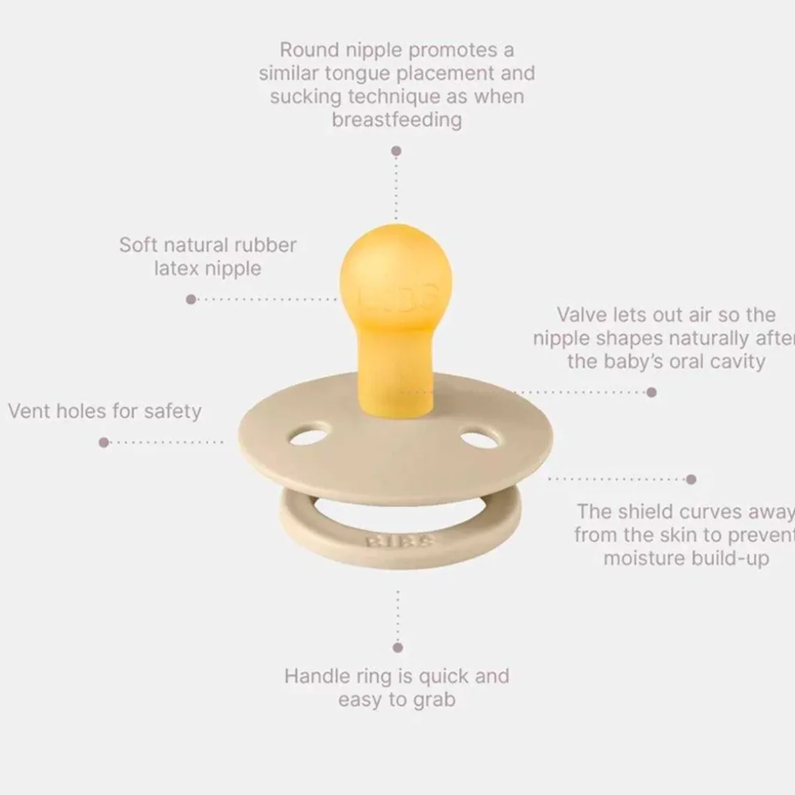 Det blide skjolddesign sikrer en behagelig oplevelse for babyen, mens det elegante farvespil giver et sofistikeret look. En hverdagsfavorit skabt til både tryghed og stil. Highlights: Suttebryst med hudlignende blødhed, blidt skjolddesign, BPA-fri og fødevaregodkendte materialer, designet og fremstillet i Danmark Materialer: Skjold i fødevaregodkendt PP, suttebryst i naturgummi latex