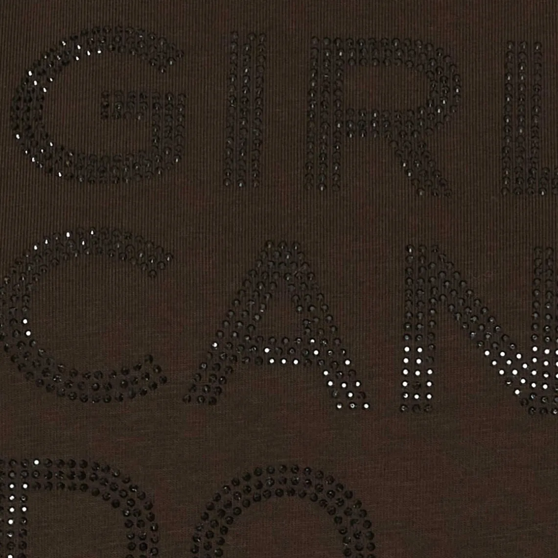 En mørkebrun T-shirt fra Marta Du Château med et iøjnefaldende statement på forsiden. T-shirten har teksten “GIRLS CAN DO ANYTHING” udført i skinnende pailletter, som giver et feminint og cool udtryk. Den er behagelig at have på og nem at style til både hverdag og casual looks. Materiale: 97% bomuld, 3% elastan