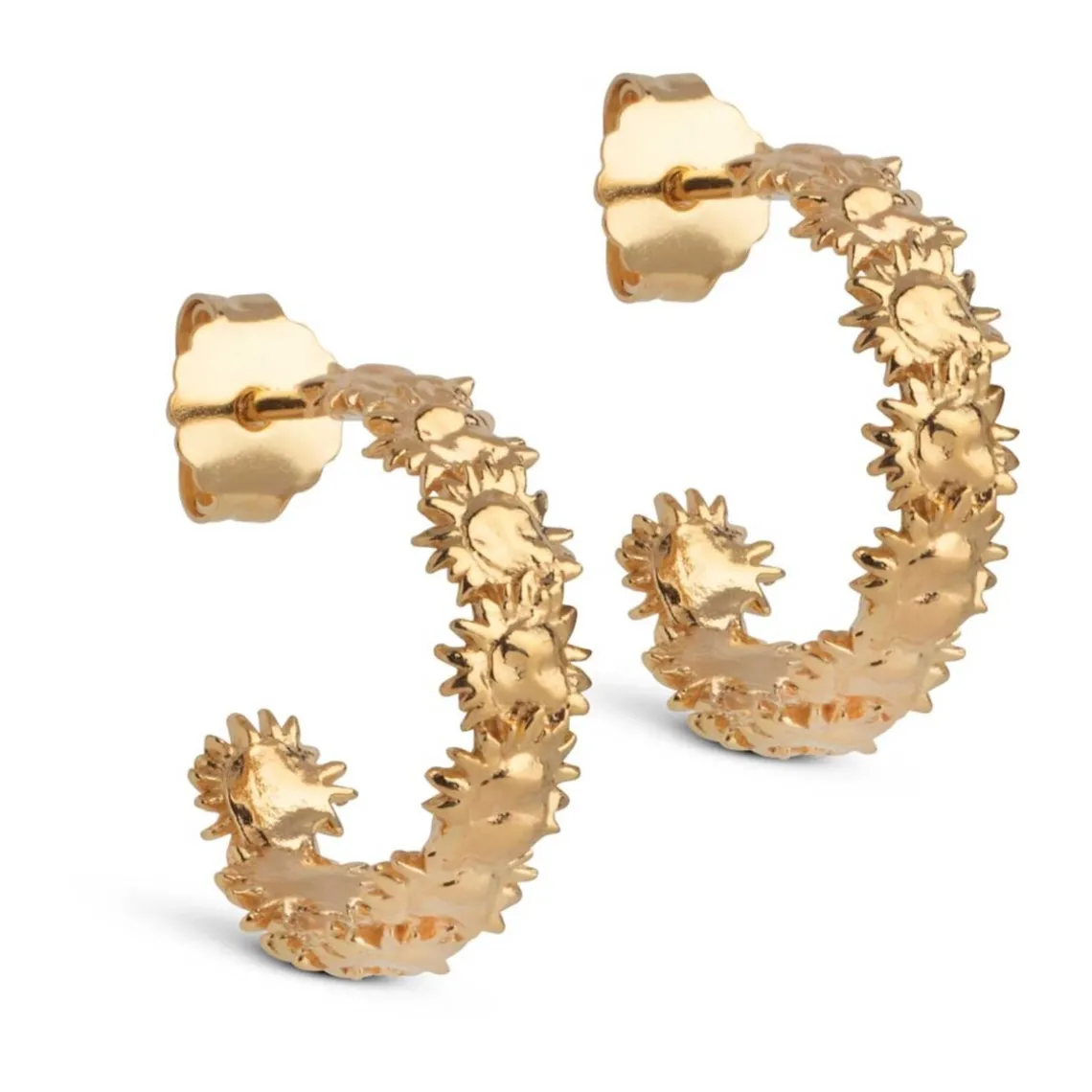 Sunshine Wreath-øreringe er søde som sukker, men også cool og afslappede. Rækken af fine, skinnende solsikkesole danner en kantet, bred ørering, der passer perfekt til dit bedste hverdagsoutfit.