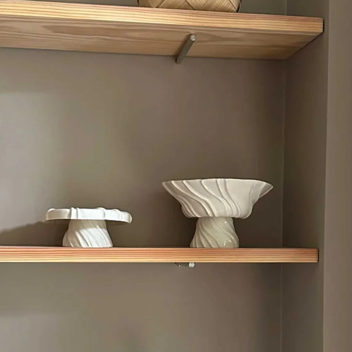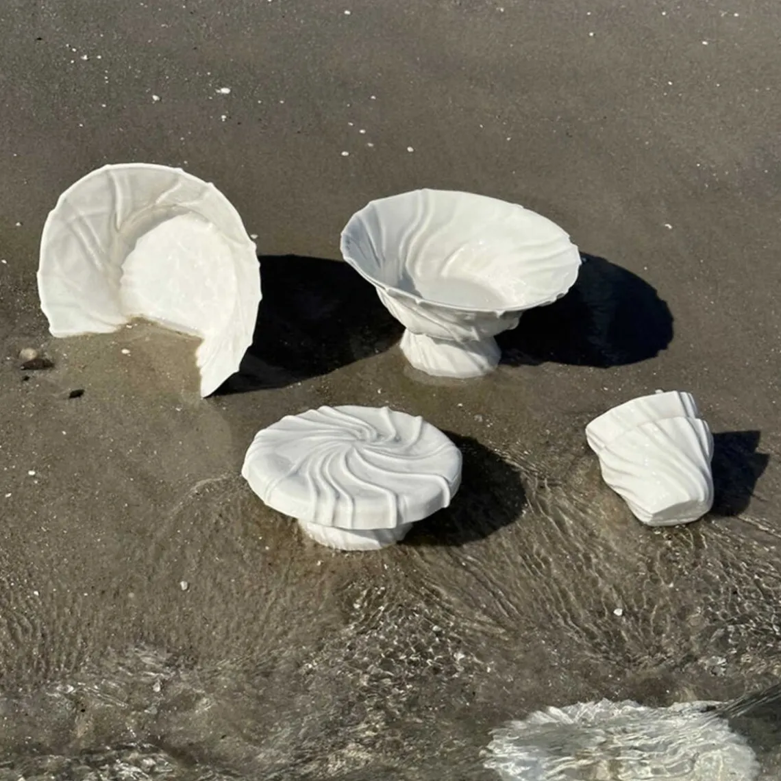 Overfladen er inspireret af den bølgede sandbund, der opstår, når vandet trækker sig tilbage og blotter den nøgne havbund – et særligt kendetegn ved dette foranderlige landskab. Da fadet er håndlavet, kan der forekomme små variationer fra fad til fad, hvilket gør hvert fad unikt. Mål: D17,5 x H9 cm