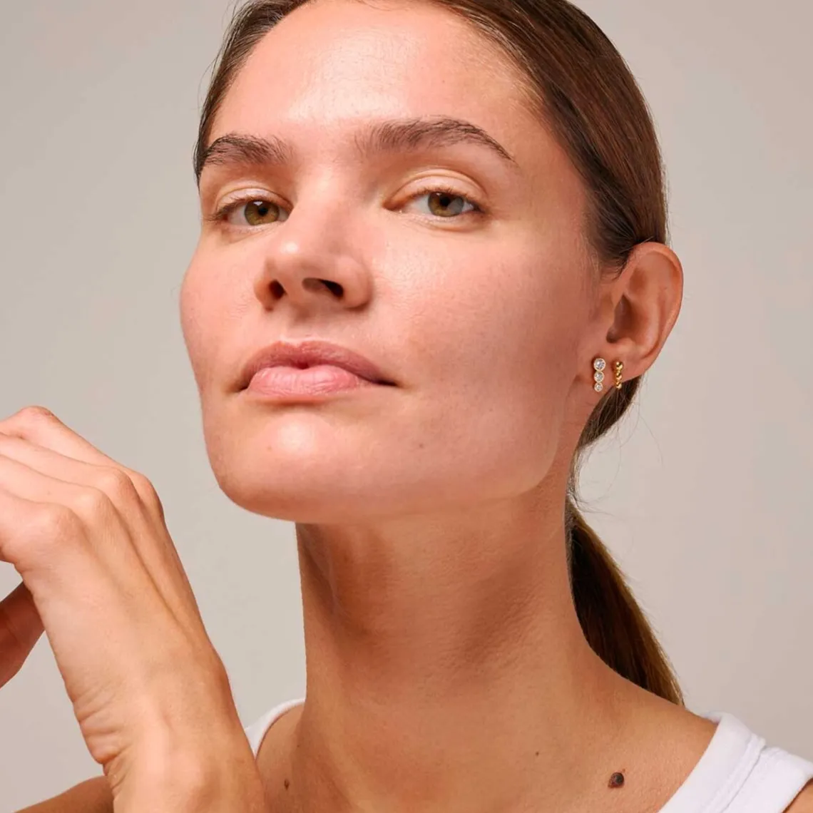 Trinity studs fra ENAMEL Copenhagen er et par cool guldøreringe, perfekt til ethvert hverdagslook.